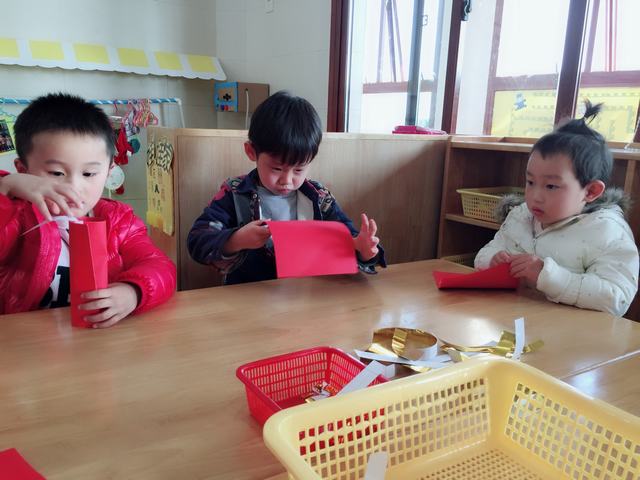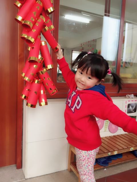 在新的一年呢,我们就和老师一起做鞭炮,把我们班弄得红红火火的!