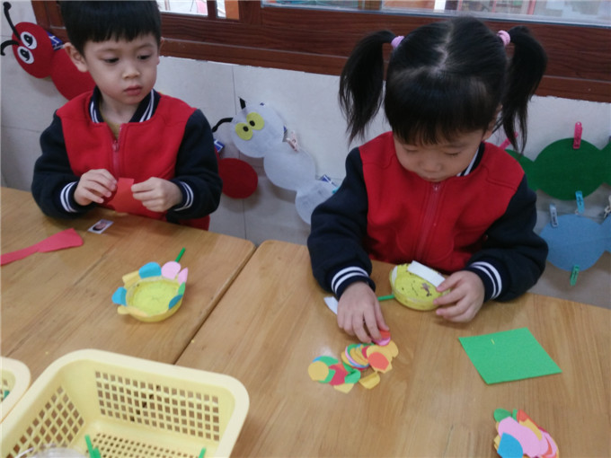 萌娃们个个认真十足,稚嫩的小手虽然还有些笨拙,但是很撕一撕,贴一贴,轻轻摁摁紧。瞧,美丽的花儿变出来啦!