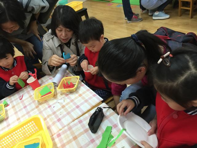 下午的游戏活动小朋友们特别喜欢,老师邀请了爸爸妈妈来和我们一起做五彩烟花。我们不仅学会了做烟花的新本领,还跟老师及爸爸妈妈们玩放烟花的游戏,真是太高兴了!