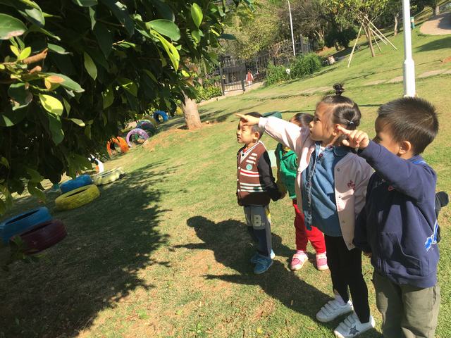 茹茹:“我觉得风应该是从天空上刮下来了的,也有可能是从我们幼儿园的山坡上跑来的。你看,树叶被吹得摇来摇去!”