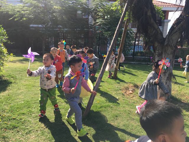在孩子们通过跑、吹、对准有风的方向让风车转起来的同时,孩子们了解了风车转起来的秘密,体验了风车带了的快乐,亲近了大自然。