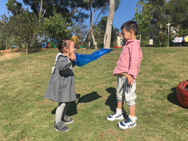 悄悄地,天气变冷了,原来是冬天来了,刮起了丝丝凉风。你瞧,调皮的风宝宝和我们小一班的宝宝做游戏呢!