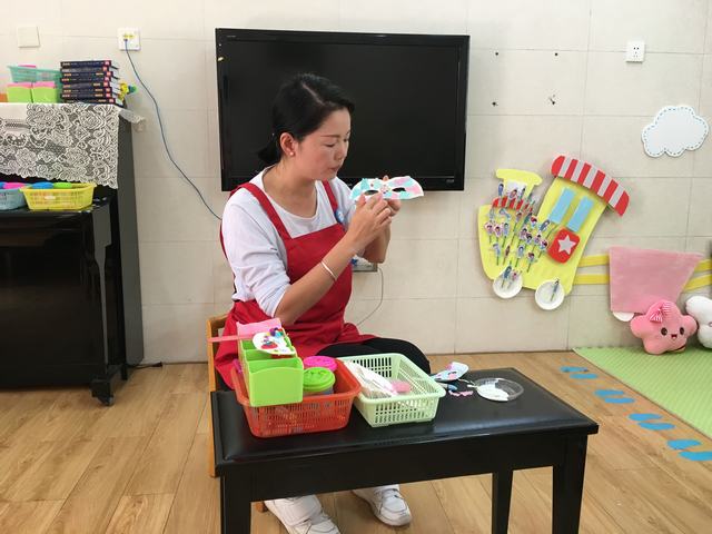 认真听老师讲解制作的步骤,我要做一个独一无二、属于自己的面具。