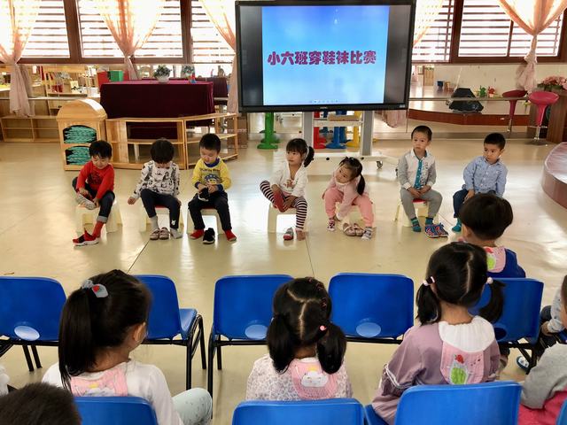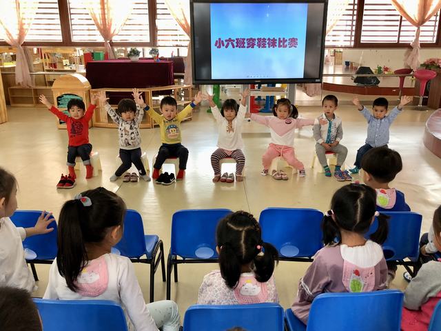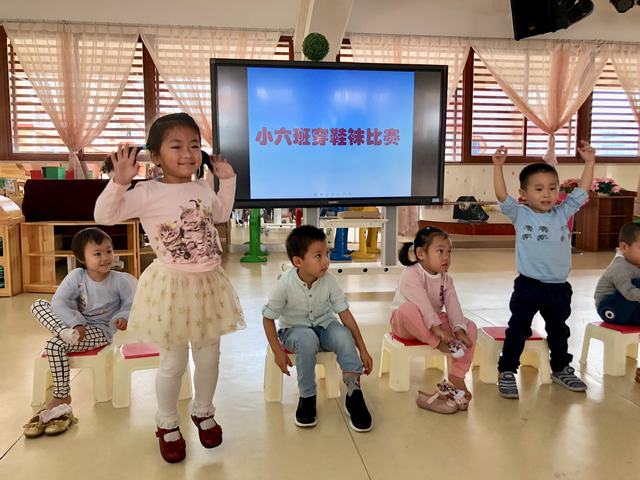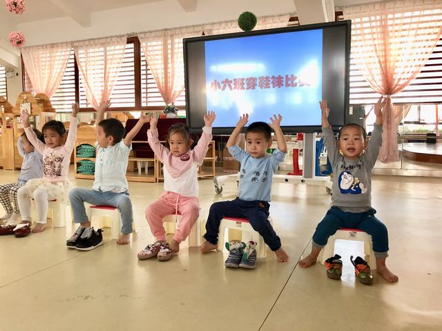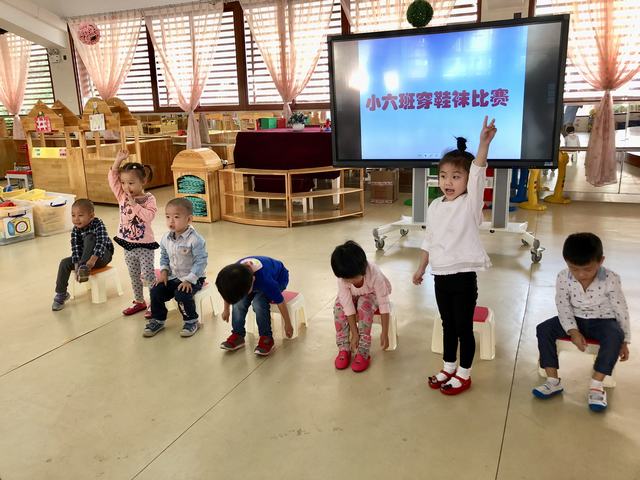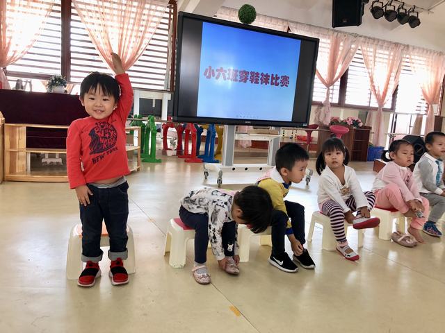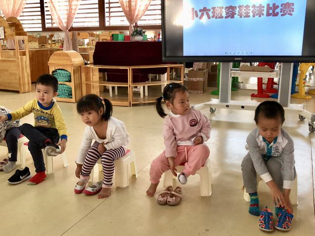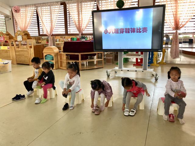 准备就绪,萌娃们的穿鞋袜比赛开始啦!
