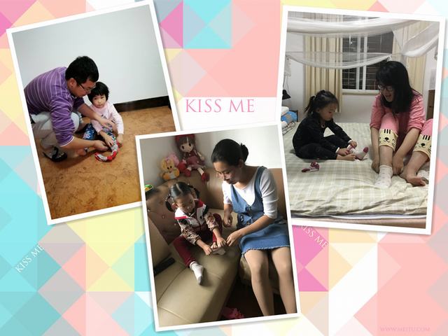 瞧!为了在班级的穿鞋袜比赛中表现棒棒,萌娃们纷纷在家里和爸爸妈妈练习穿鞋子、穿袜子。小手轻轻捏,小脚伸进去,慢慢往上拉,袜子拉拉好。哟!小袜子稳稳地穿好在小脚上喽!