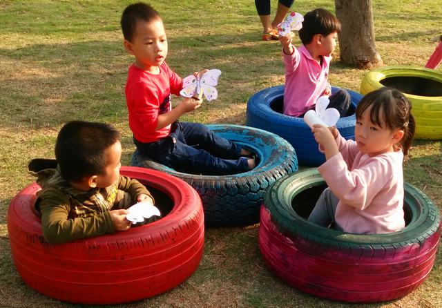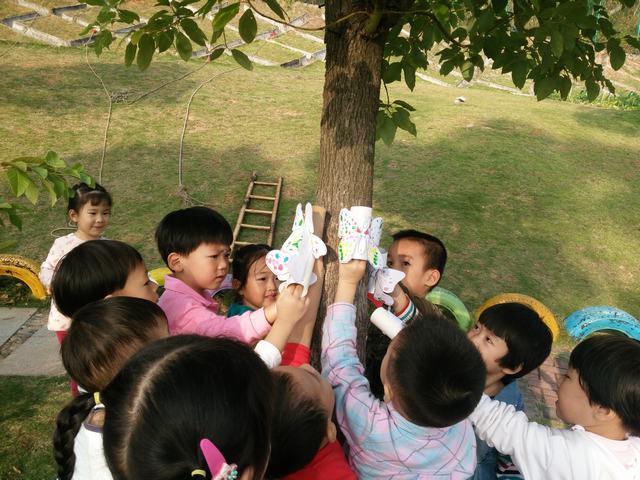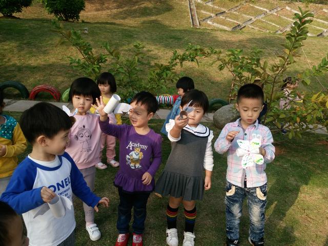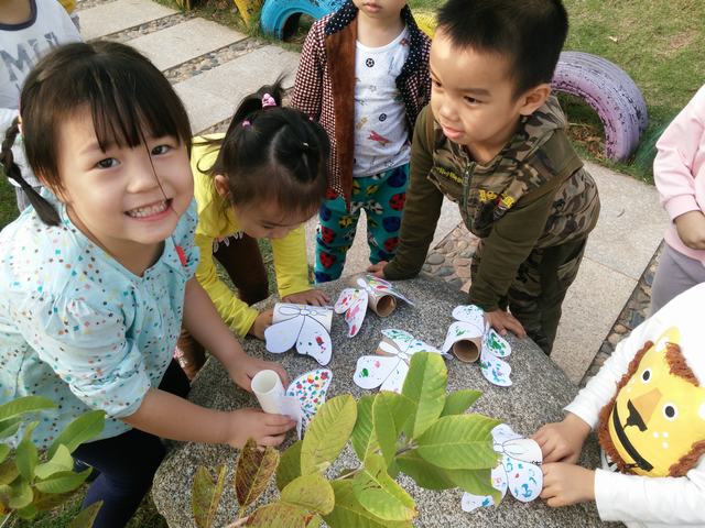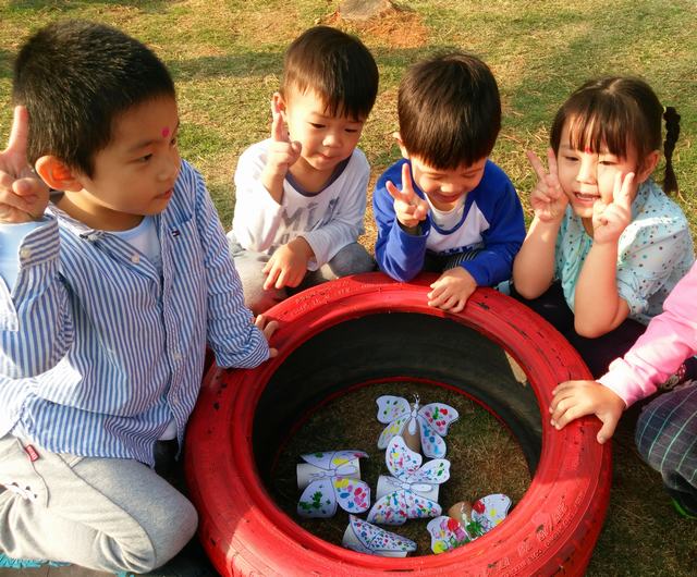 “老师老师,你看我的蝴蝶飞到了树上,是不是很棒呢”,“老师老师,我的蝴蝶飞到了石头上,你看我们的蝴蝶飞得快不快?”宝贝们拿着自己的作品在阳光下追逐玩耍,那一张张天真无邪的笑脸在阳光的照射下金灿灿地发着光!