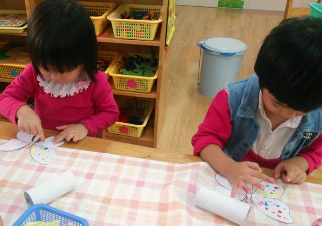 欣赏完漂亮的蝴蝶,孩子们就按捺不住兴奋,迫不及待动起手来了。
