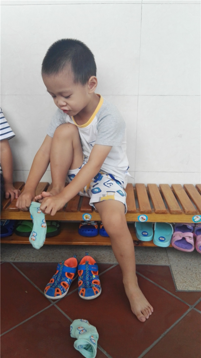 小拖鞋放放好,我的鞋子摆摆正。左一只,右一只,我的鞋子穿好啦!