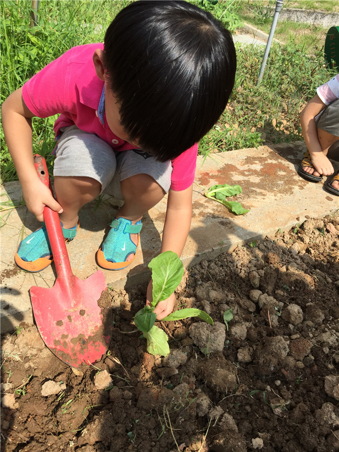 还没来上幼儿园前,就听说幼儿园小山坡上有个开心农场,里面的蔬菜品种可多啦!而且都是小朋友们和老师一起亲手播种的哦!盼望着盼望着,今天,老师终于要让我们当一回小农夫,体验一下当小农夫的乐趣!瞧!我们已经迫不及待地带上绿油油的小菜苗出发咯!