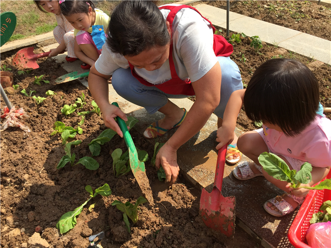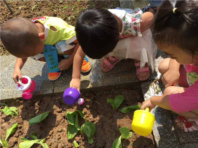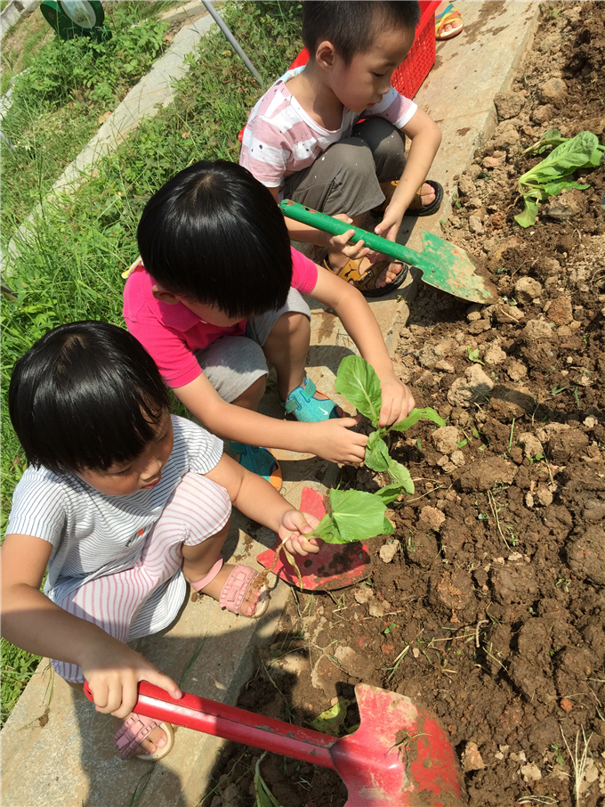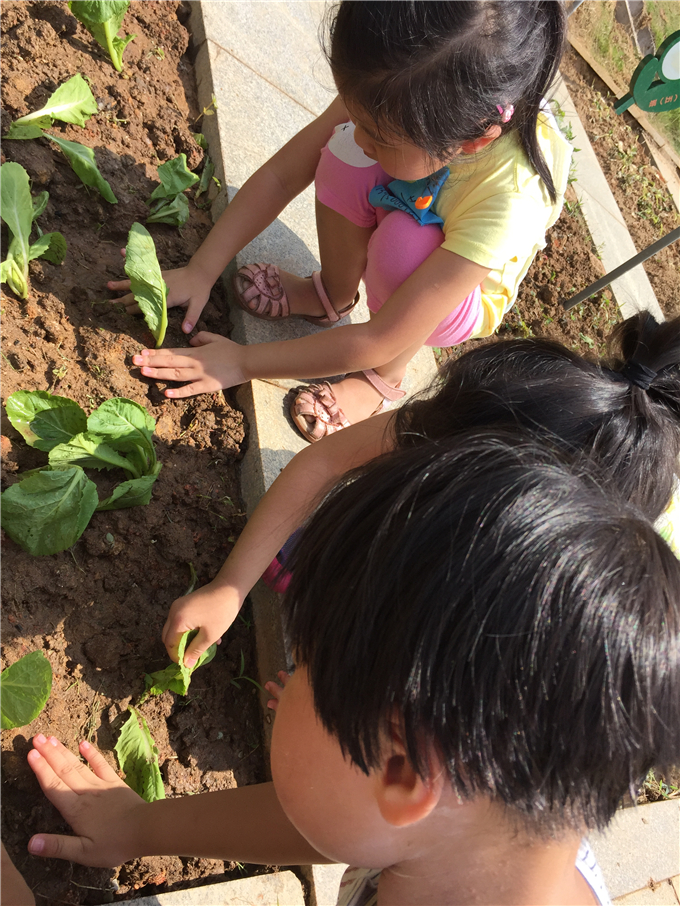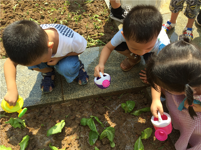 在老师的帮助下,小朋友们都亲手种下了小菜苗,看着小菜苗们都在菜地里咕咚咕咚地喝着水,大家可高兴啦!