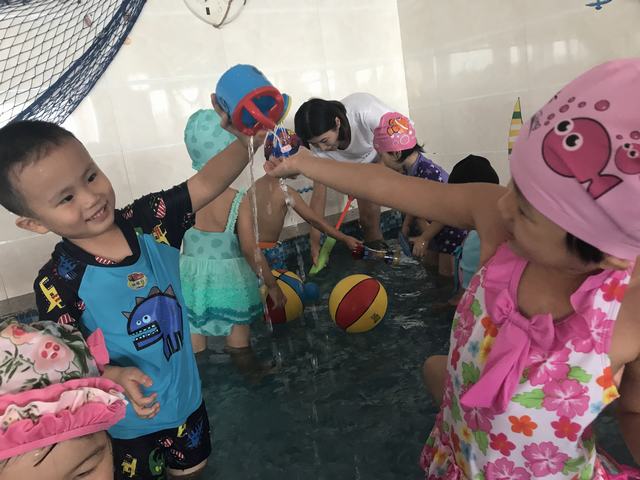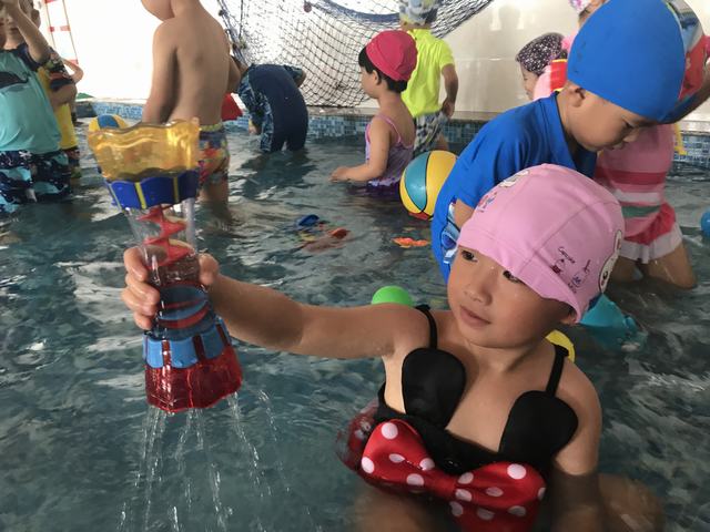 在一片欢声笑语中,小二班的小朋友们有了一份美好快乐的戏水初体验,期待下次吸水活动的到来哦!