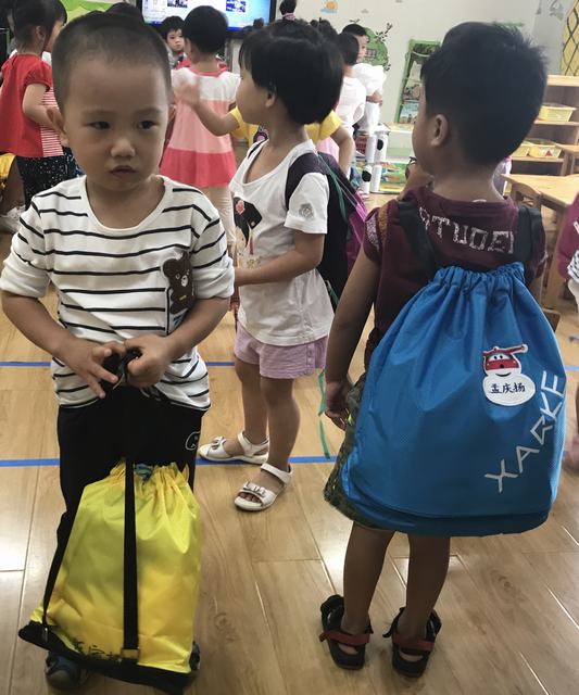 这天早上,小朋友一走进教室就迫不及待地跑来跟老师“展示”自己的小书包。