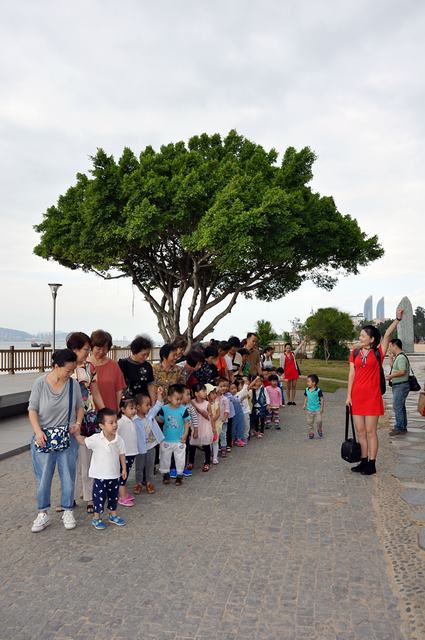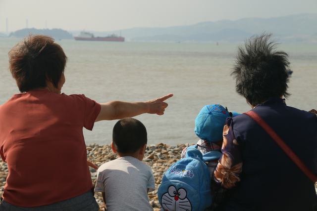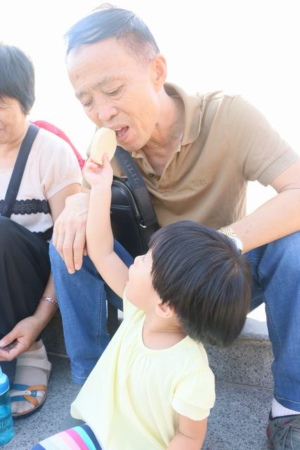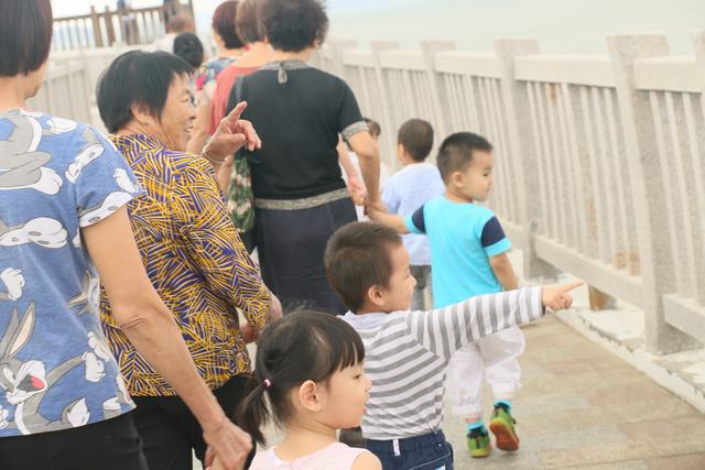 “胜利喽!”到达音乐广场后,萌娃坐在阶梯上靠着爷爷奶奶休息,一起看看远处的轮船、海鸥、金门岛,这怡人的风景,片刻的小息不知不觉拉近了萌娃和爷爷奶奶之间的距离。