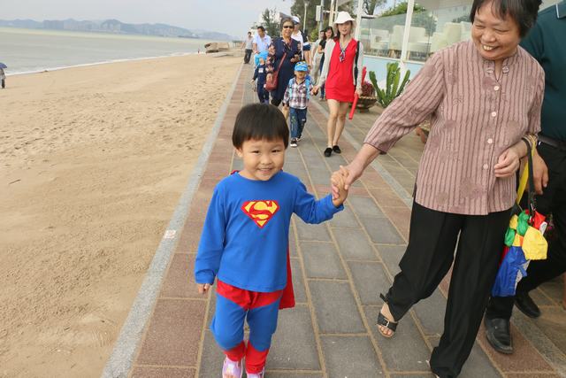 在这个特别的日子里,萌娃们跟爷爷奶奶一起健步走、一起看海、一起玩游戏、一起品尝重阳糕,一起收获了浓浓的祖孙情谊。