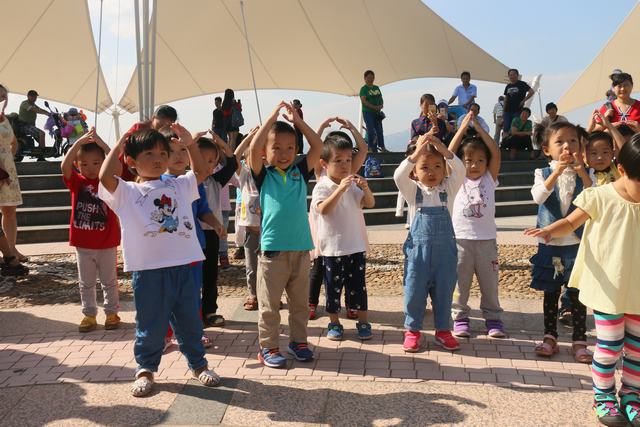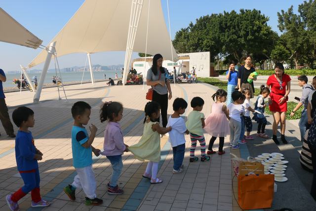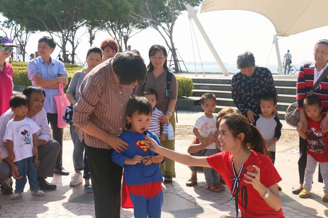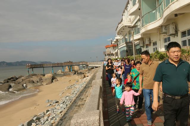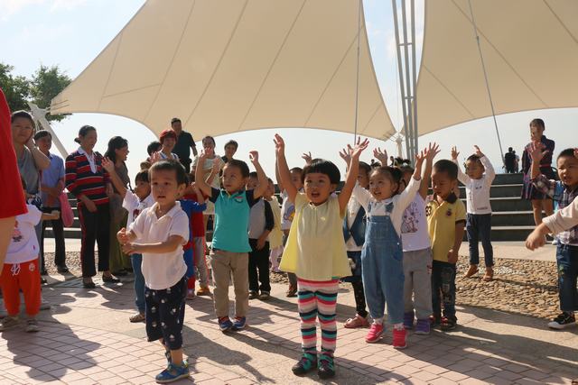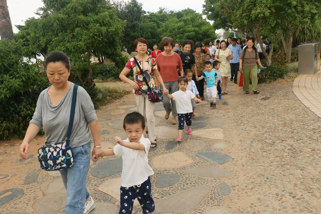 集合啦!小火车搭起来,我们准备出发啦。“走走走,我们小手拉小手,走走走,我们一起走”。“阿嬷,今天我们要一起走木栈道,看大海哦。”“爷爷,一会到音乐广场还有我们准备的精彩表演呢。”在一阵阵欢声笑语下,萌娃们来到了健步走的终点——音乐广场。