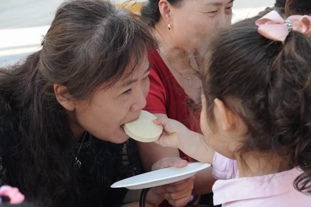 快乐的游戏玩起来哦!经典游戏《击鼓传花》和《摸手猜爷爷奶奶》掀起了活动的小高潮。萌娃们和爷爷奶奶们一起互动游戏,幸福共享,在一片欢声笑语里感受着浓浓祖孙之情。