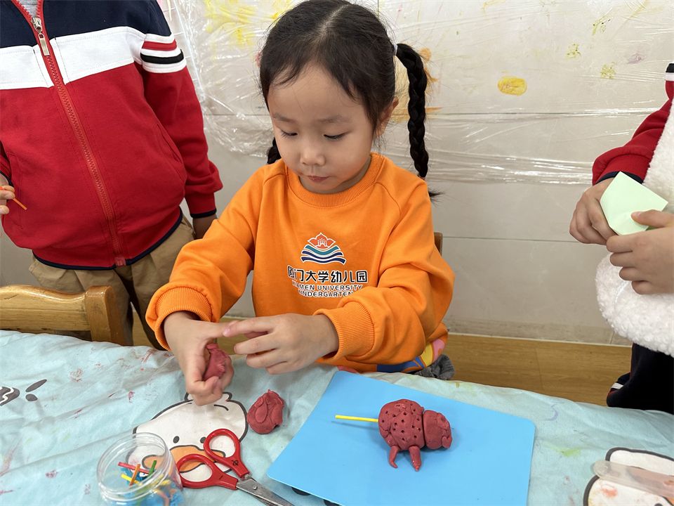 美工区里孩子们我用画笔画出天马行空的想象。每个孩子在美工区里玩得不亦乐乎,利用手中不同的材料,呈现出不同作品。