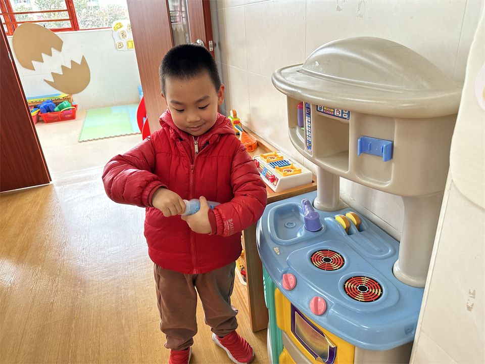 家庭区是一个小型的”生活空间“。在这里,孩子们轻松的快乐的坐着“大人”,照顾宝宝、洗碗做饭,样样行。发展了动手能力,提高了生活技能。
