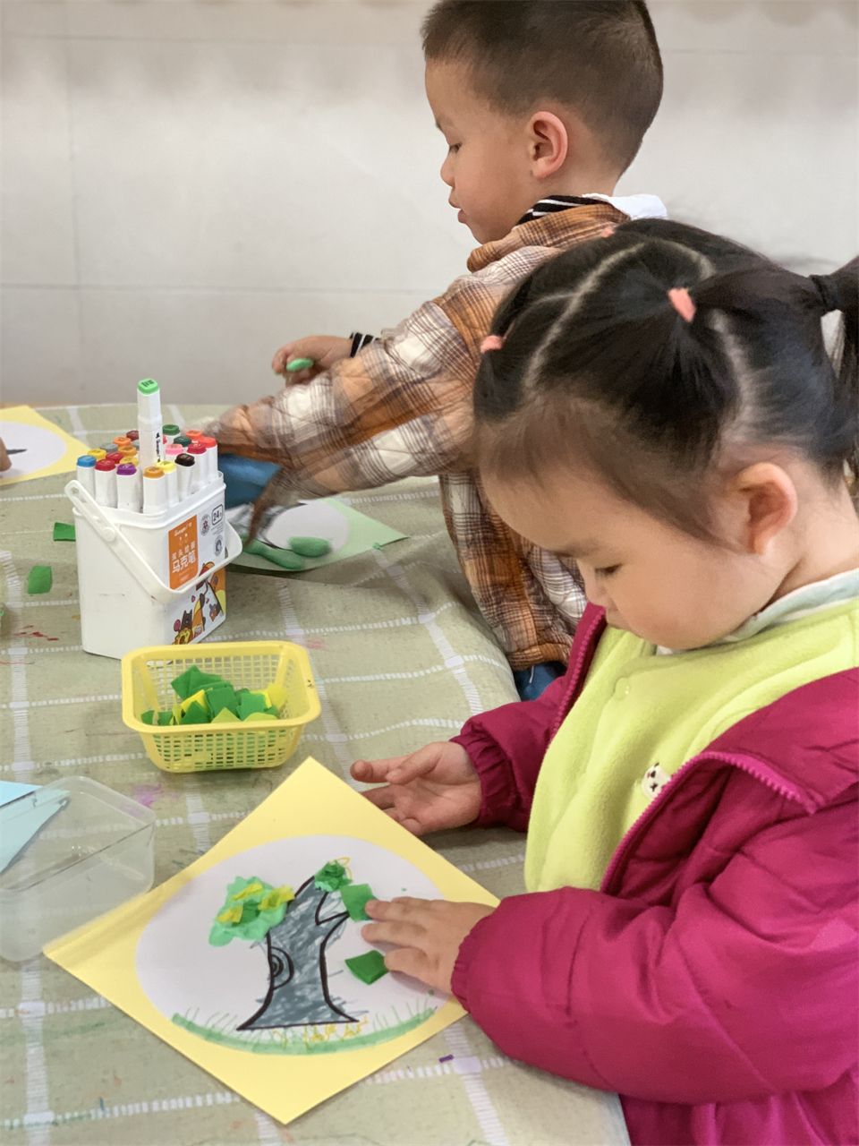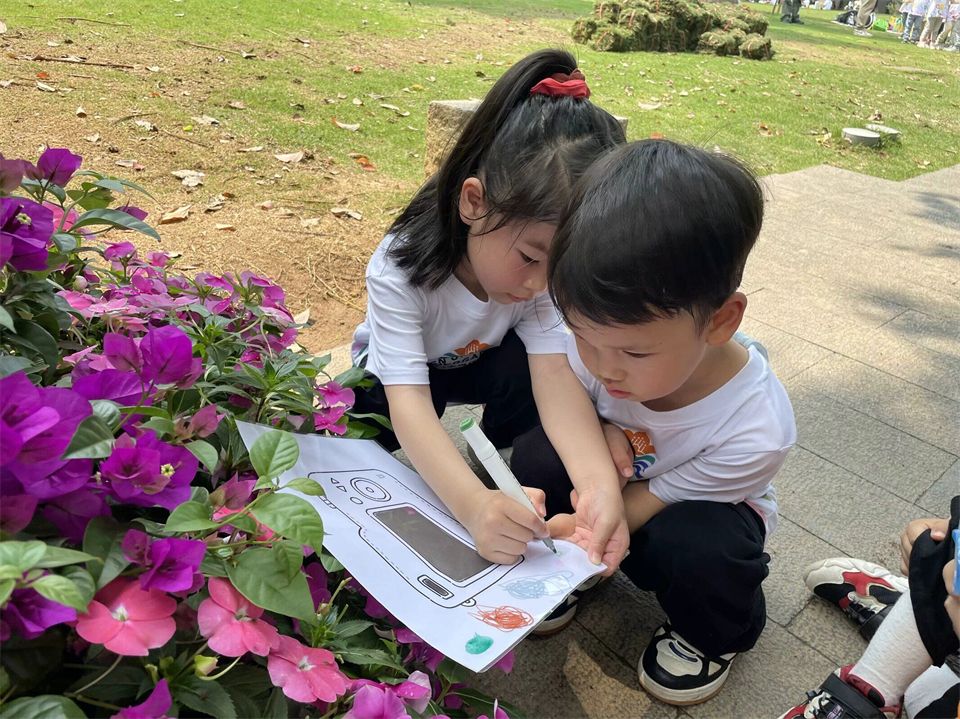 孩子们沉浸在春天的气息、春天的画卷、春天的色彩中。