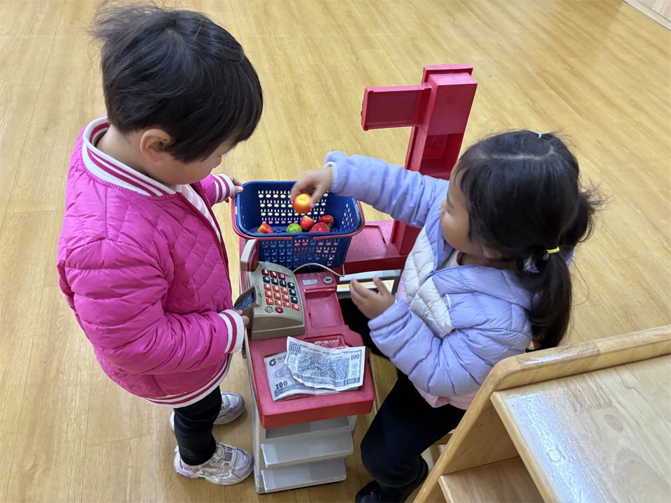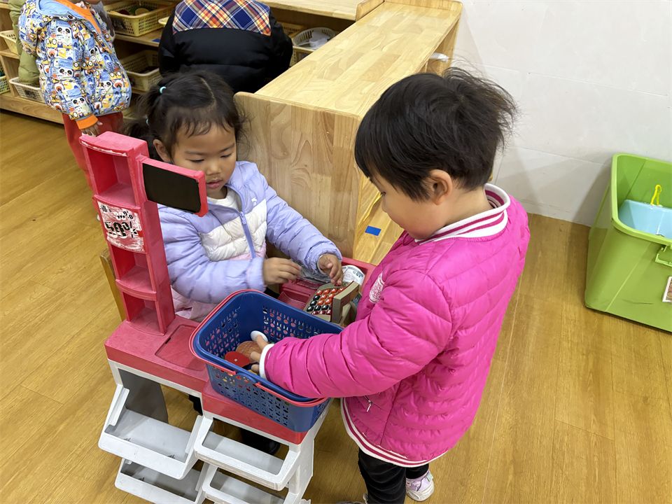 超市是幼儿常去的地方,超市里有琳琅满目的商品,孩子们挑选自己需要喜欢的好物,模仿者爸爸妈妈结账付钱,一气呵成。