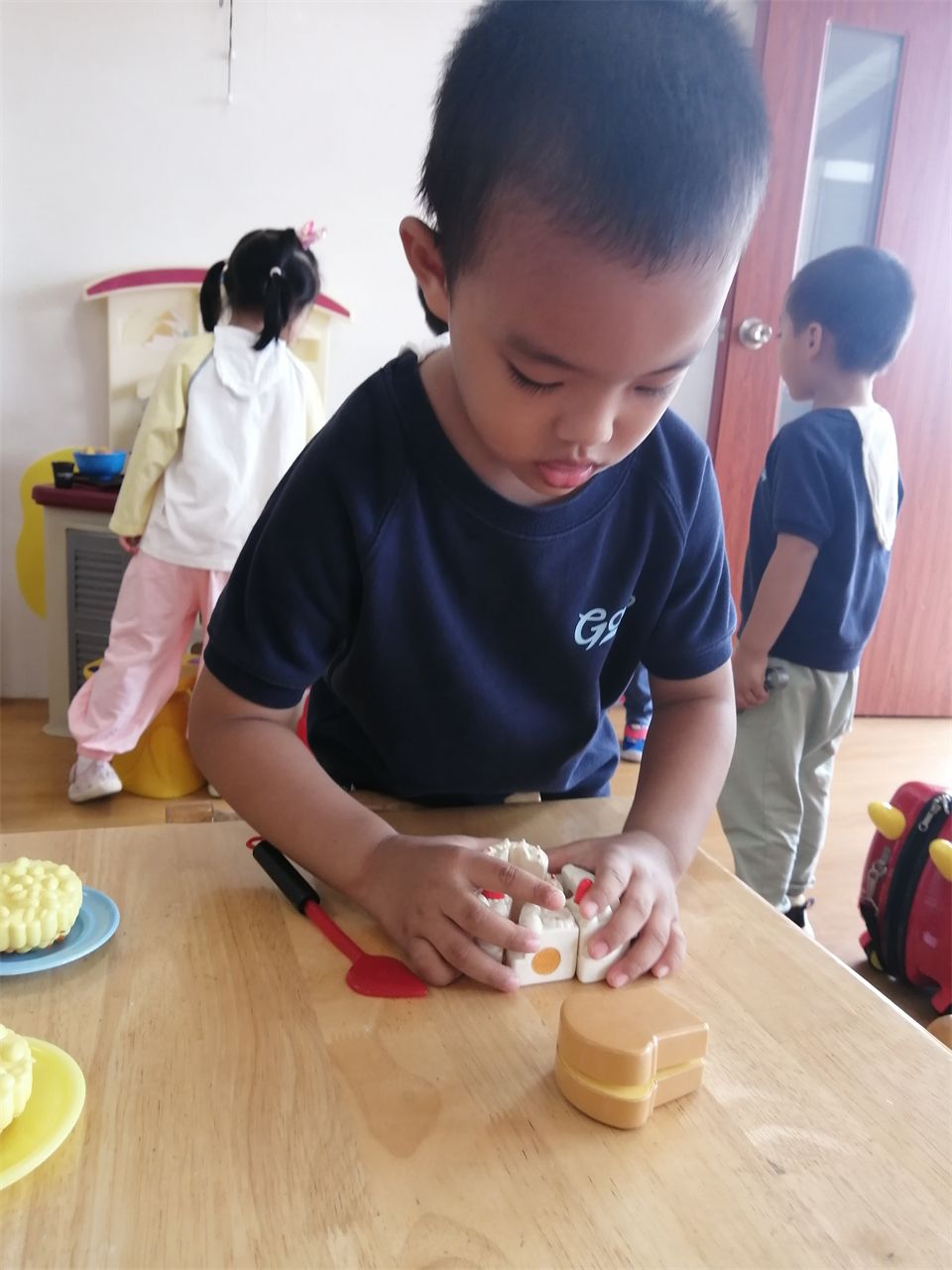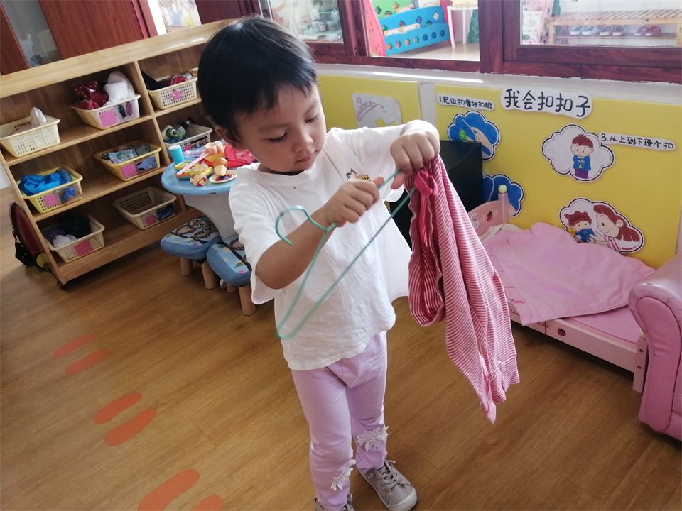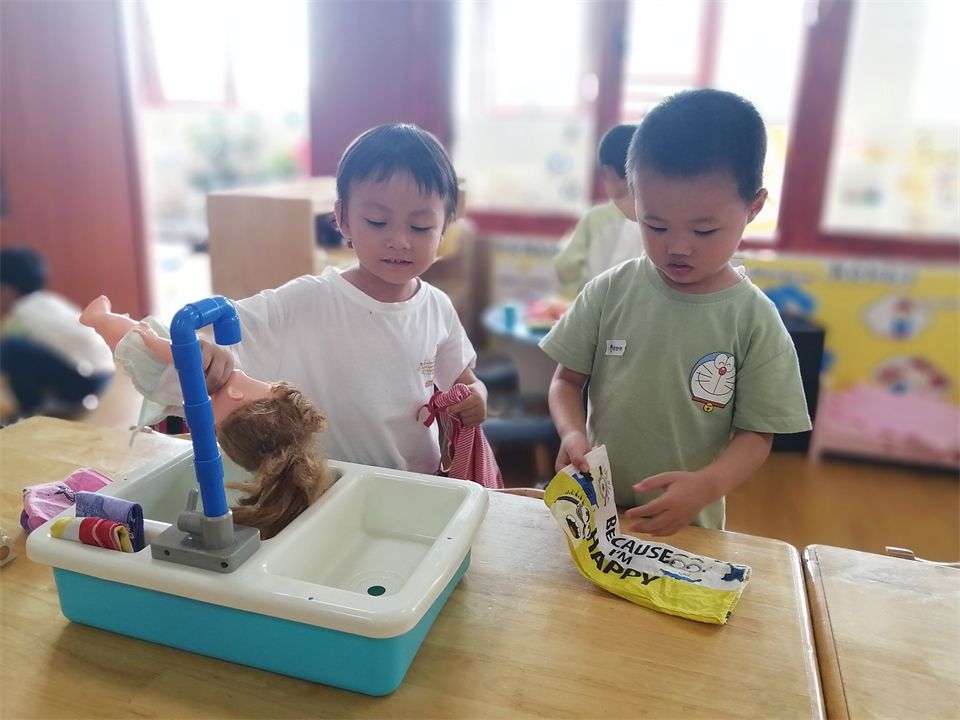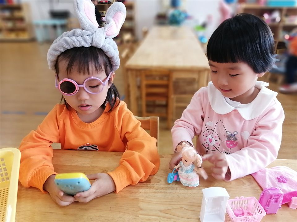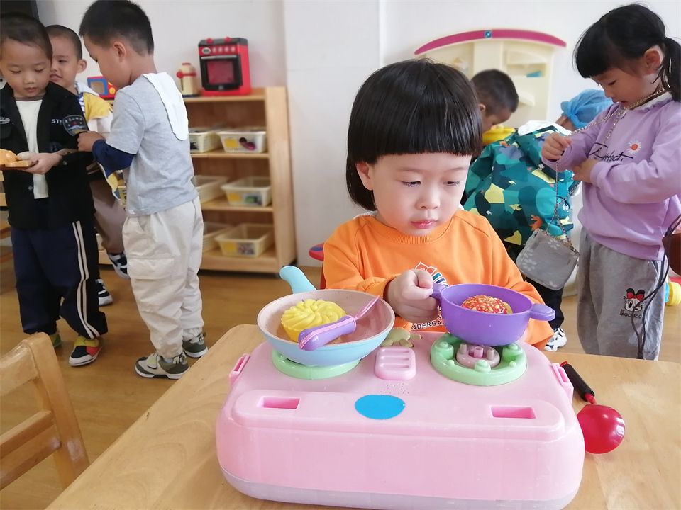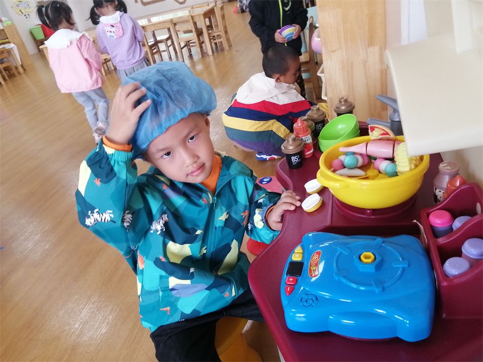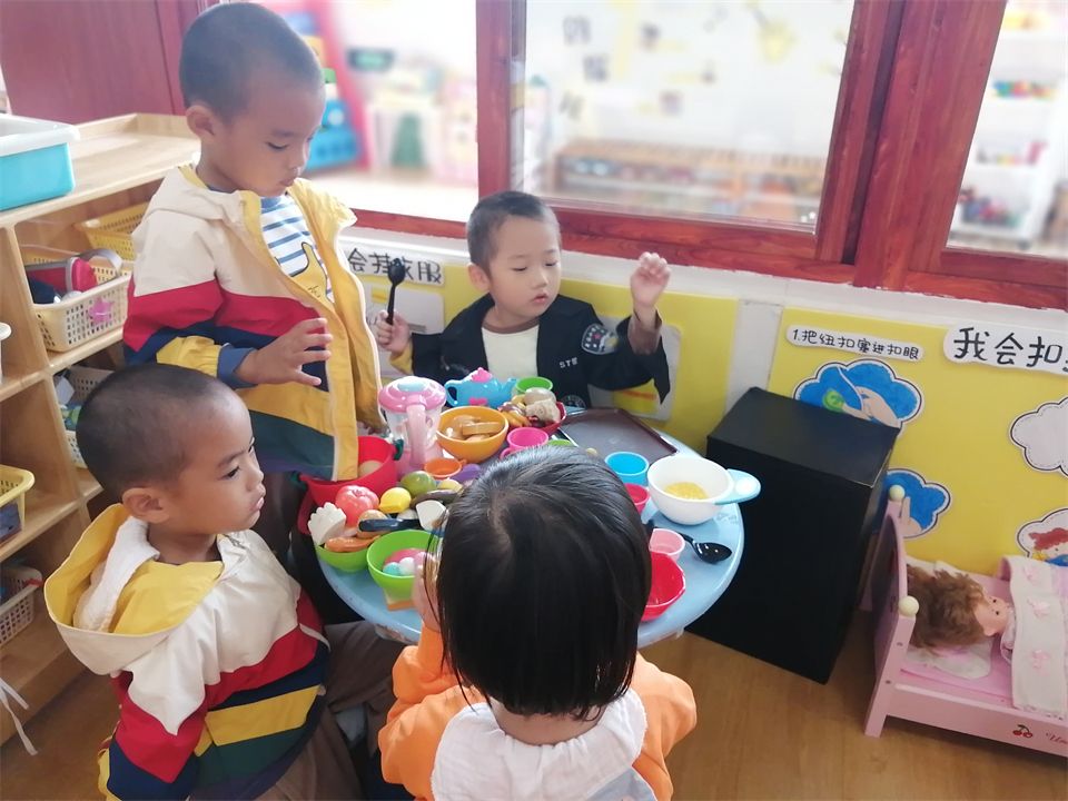 瞧!温馨的家庭区游戏是他们的日常,丰富的游戏材料更是吸引着宝贝们,他们自主选择、相互合作、勇敢表达。通过自己能干的小手创设着美丽的生活,体验着学习生活的愉悦。