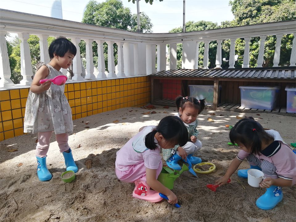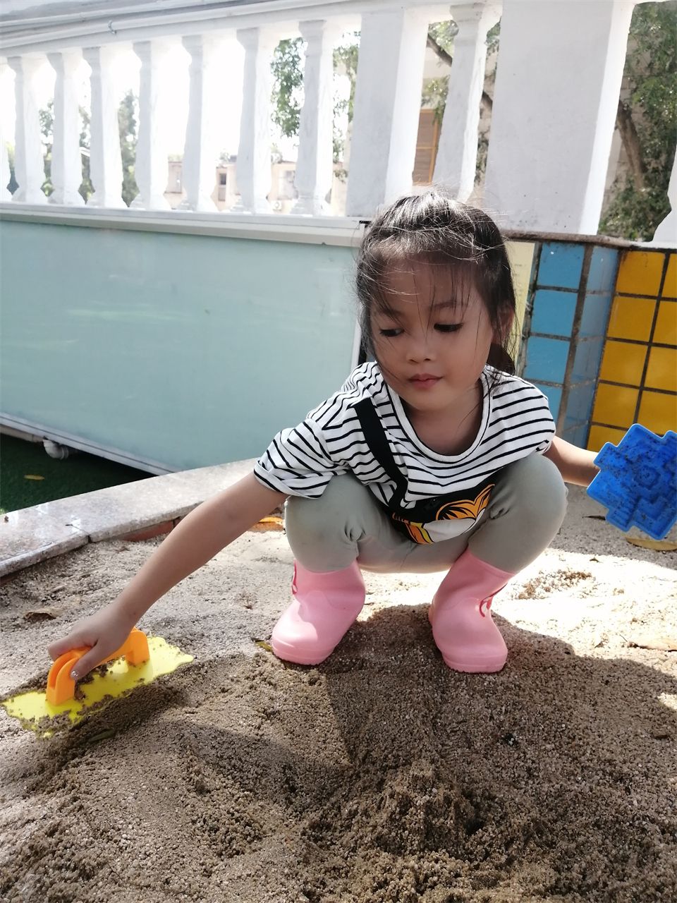 玩沙是宝贝们最爱的场所之一,宝贝们在这里玩得多嗨呀!在小小的沙坑里面,挖呀挖呀挖……,玩沙区里他们有自己的奇思妙想,创作出各种有趣的图案。