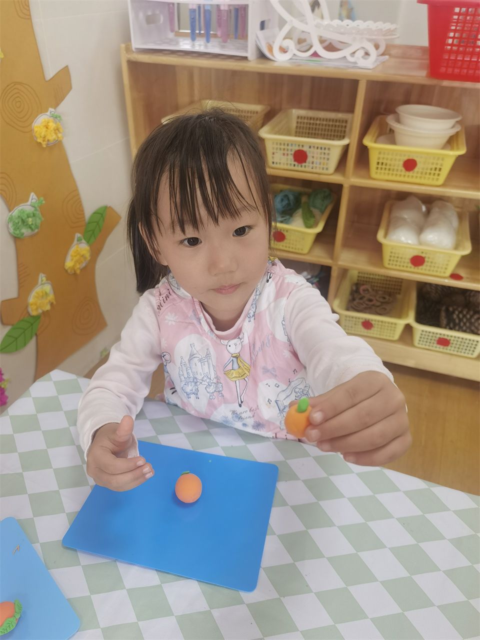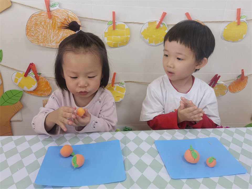 小朋友们运用巧巧小手通过贴、画、捏等方式制作出关于橘子的手工作品,这一过程小朋友们充分获得了创造的成果,体验了创造的乐趣。