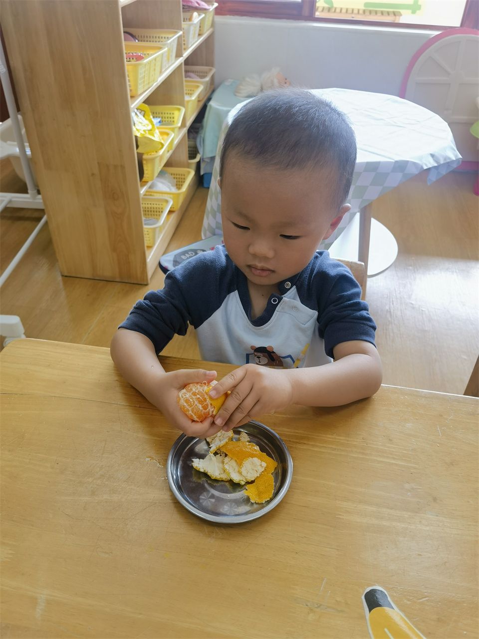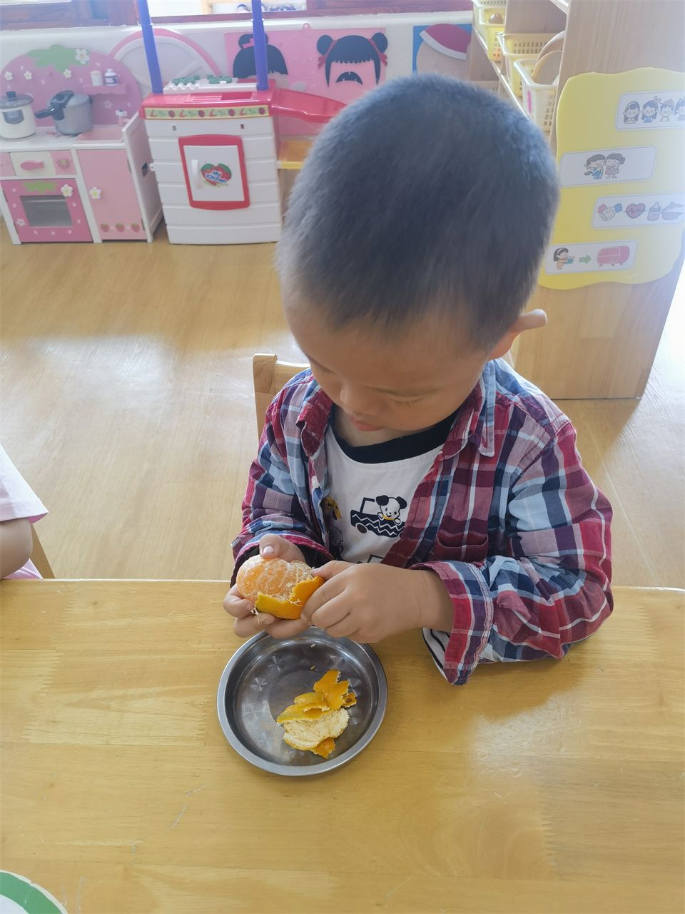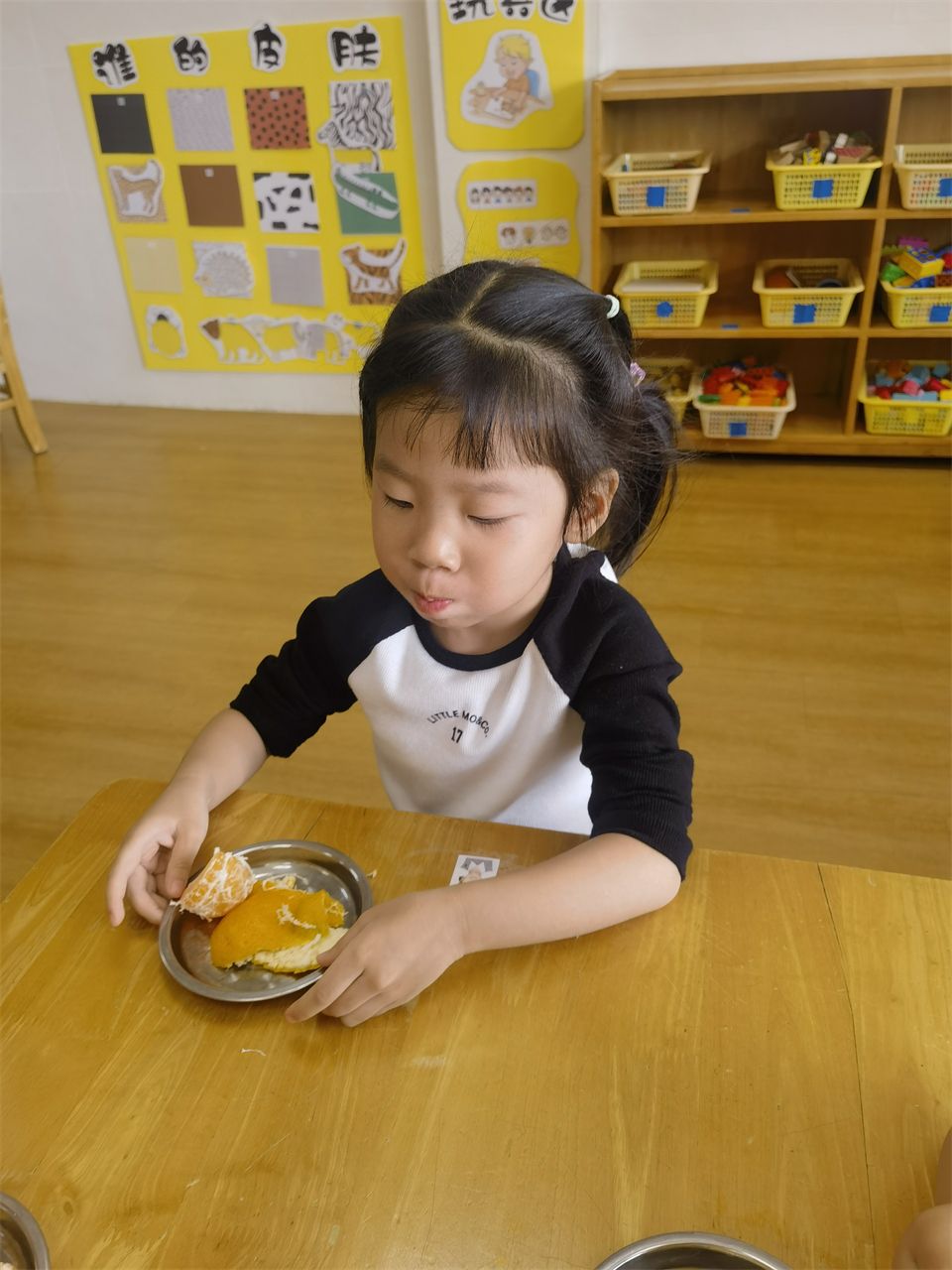 “老师,你看我会剥橘子。”