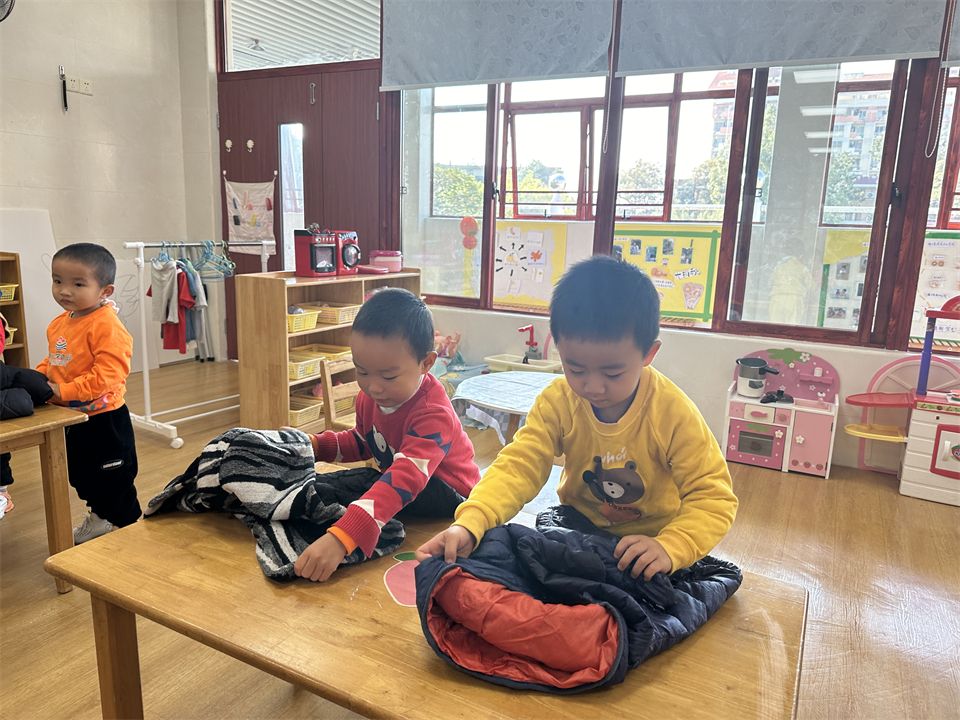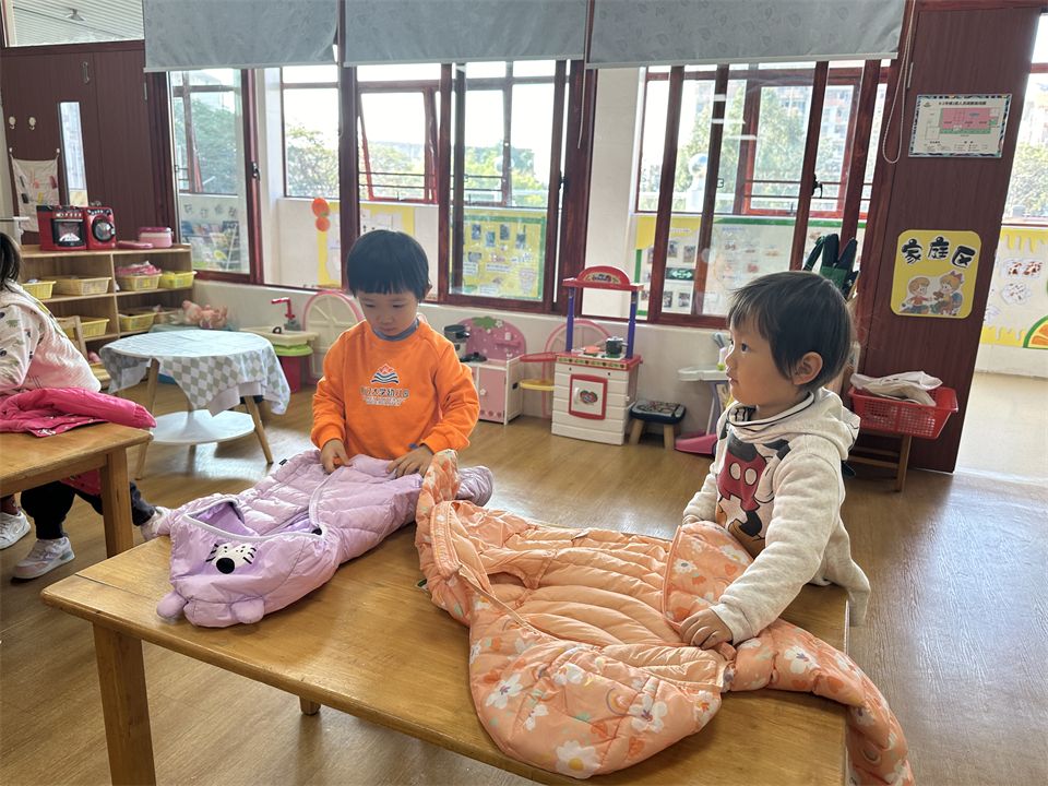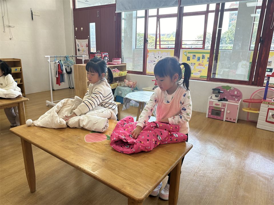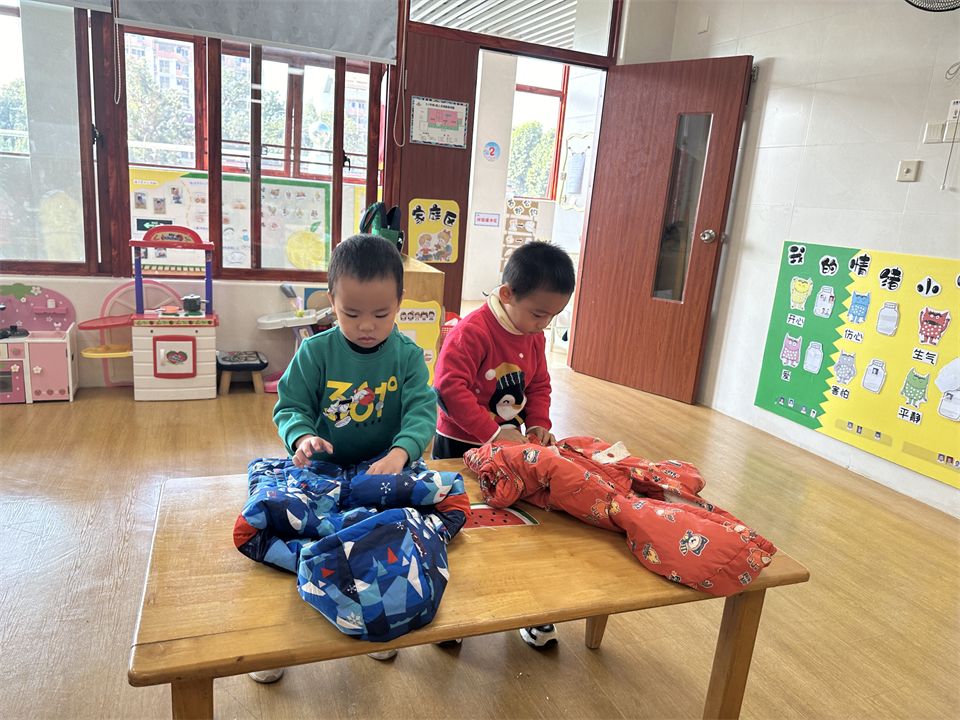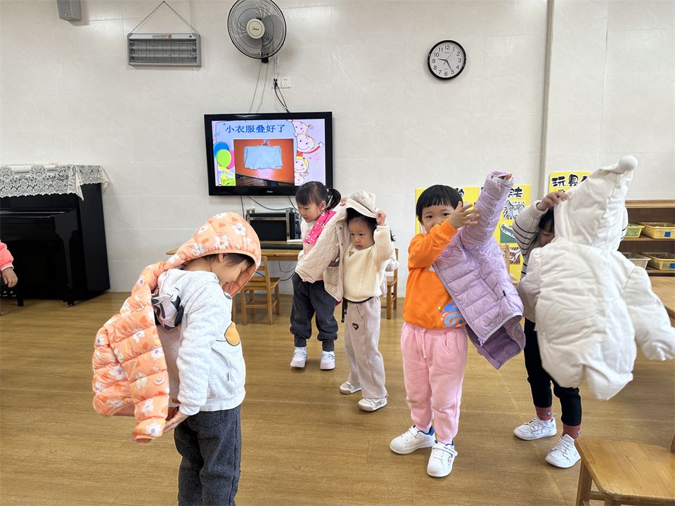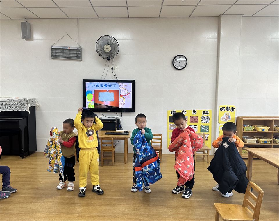 陈鹤琴先生说过这样一句话:“凡是孩子自己能做的事,让他自己去做。”小小衣服,大大学问。穿衣服,叠衣服看似是生活中的一件小事,但对于小班的孩子来说,却是一件非常具有挑战的事情。相信有了这次经历后的小宝贝们会更加自信、能干。