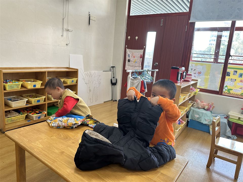 通过一个多月的学习和练习,宝贝们都已经会自己穿衣服啦!让我们来欣赏一场别于生面的“穿衣比赛”吧。