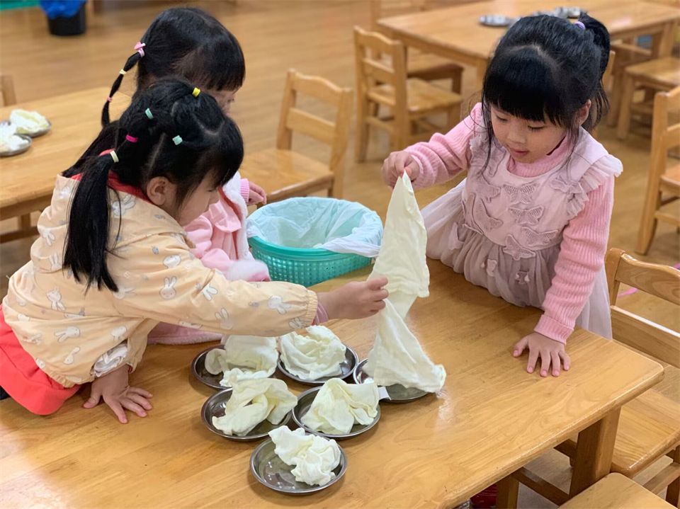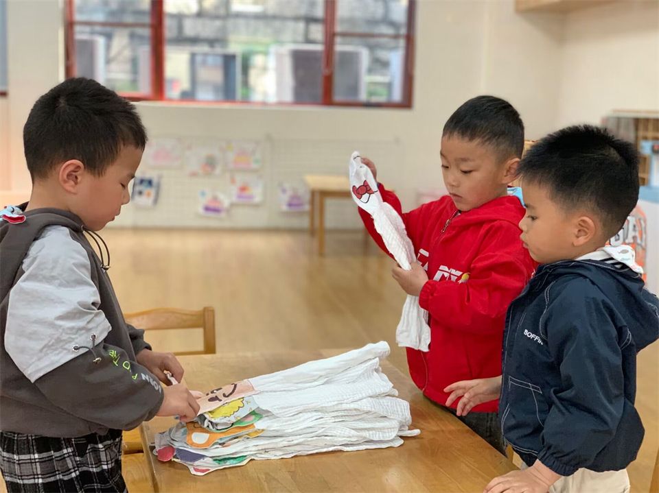 这是劳动的季节,孩子在班级里做着力所能及的事情:叠汗巾、晒盘子、分毛巾,可厉害啦!
