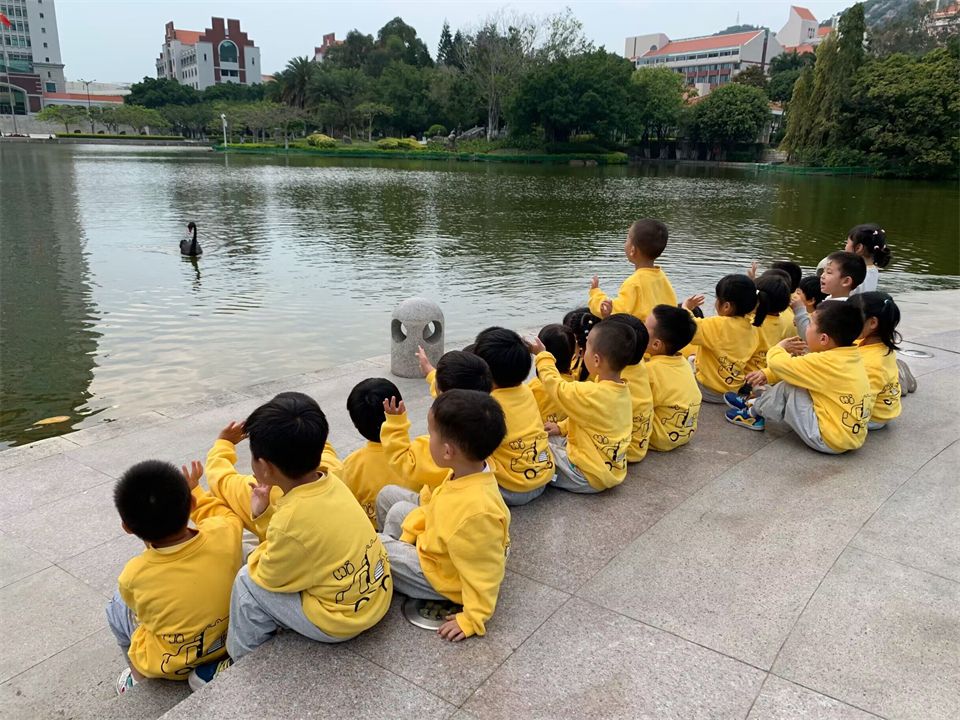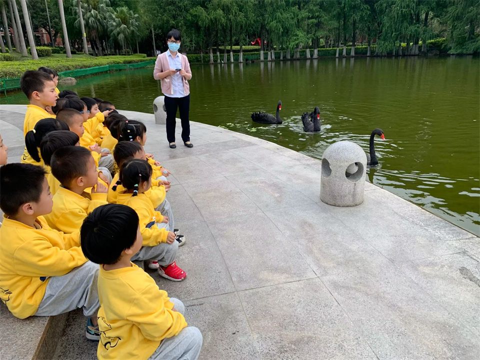 这是可爱的季节,小六班的孩子们前往芙蓉湖观赏黑天鹅。可爱的黑天鹅吸引着小六班孩子们的注意力,孩子们纷纷惊呼:“好喜欢黑天鹅!”