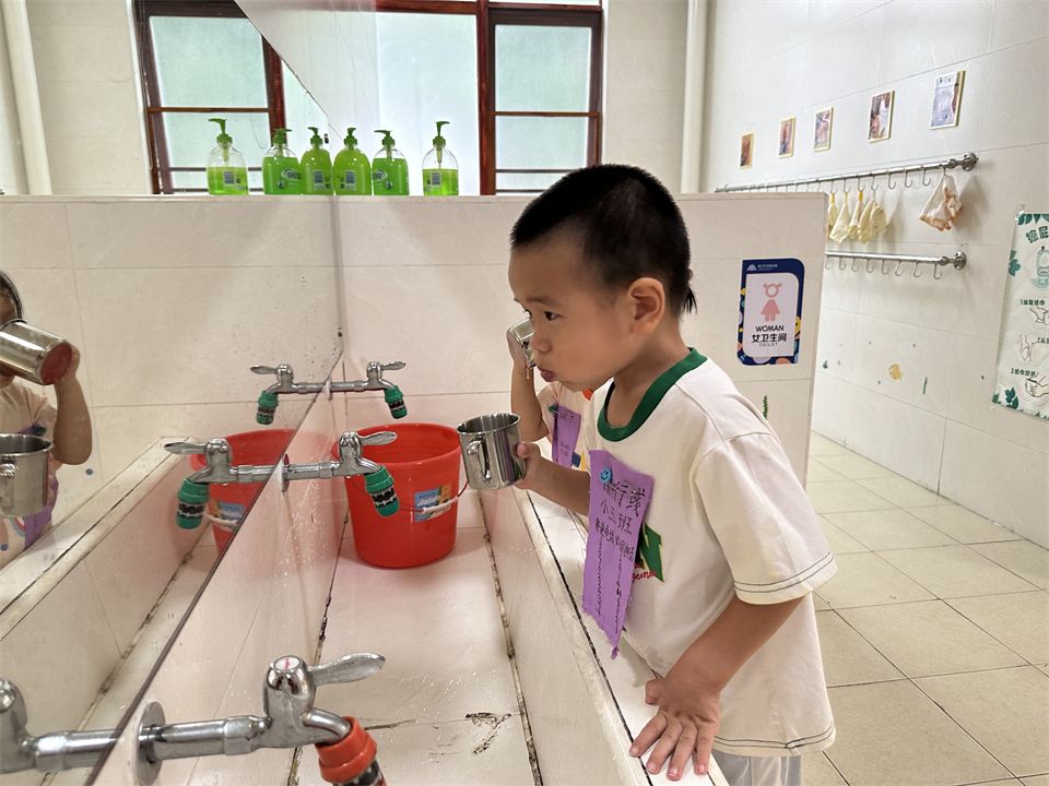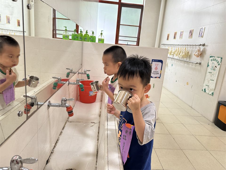 吃完美味的饭菜和点心要记得漱口哦,保护牙齿我最棒。