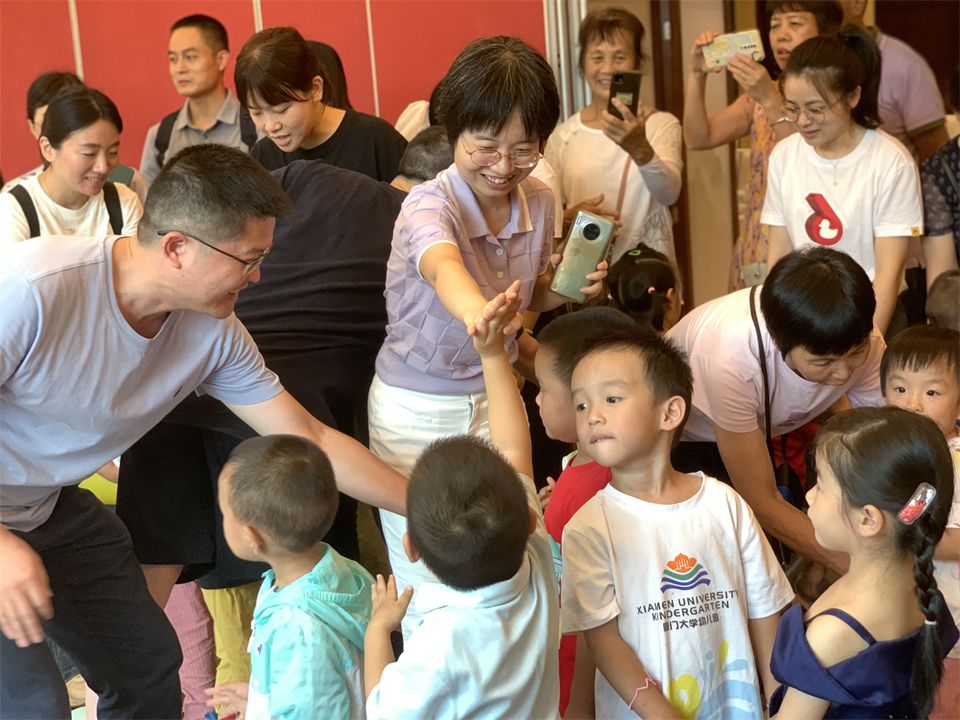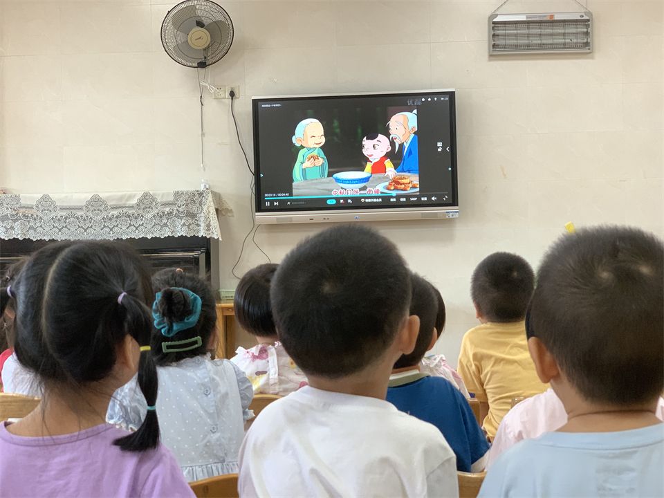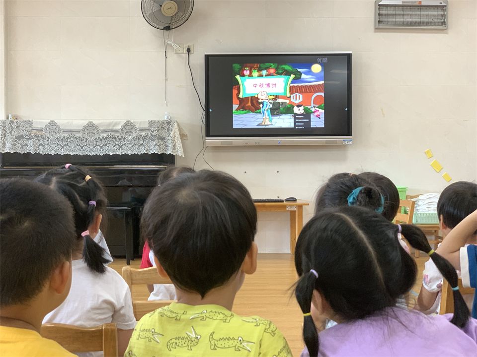 “中秋月饼一面镜,照得大厅亮堂堂,街头巷尾博月饼,厝里喊得大小声……”朗朗上口的闽南童谣响起,新入园的小六班萌娃们立马停止了哭声,眨着眼睛,竖着耳朵认真听。