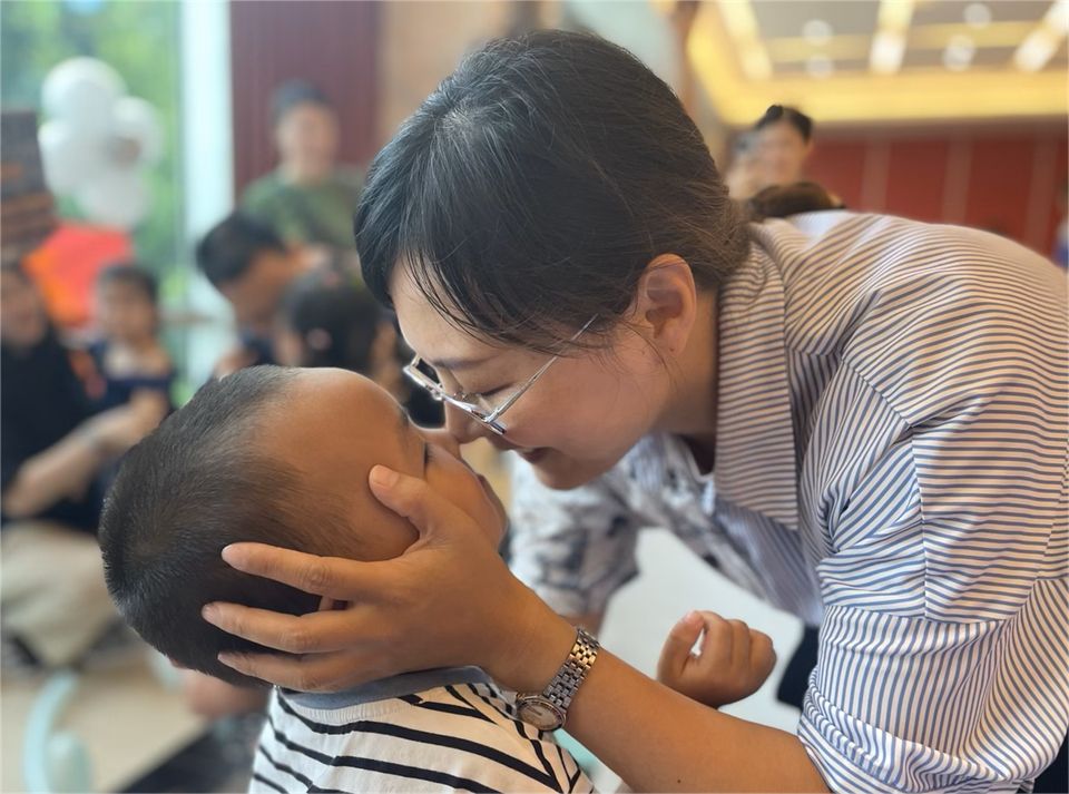 “泡泡糖,粘什么?”脸蛋粘脸蛋、鼻子粘鼻子、肚子粘肚子、屁股粘屁股,时而有爱,时而温馨,时而可爱,家长们被宝贝的憨态可掬的形态逗乐了!泡泡糖游戏更加拉进了家长与萌娃的距离,把活动推向了高潮~