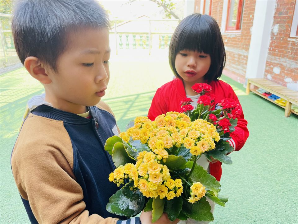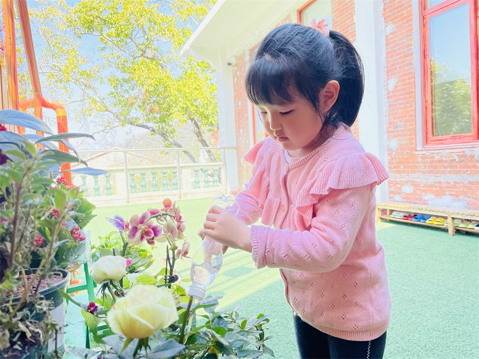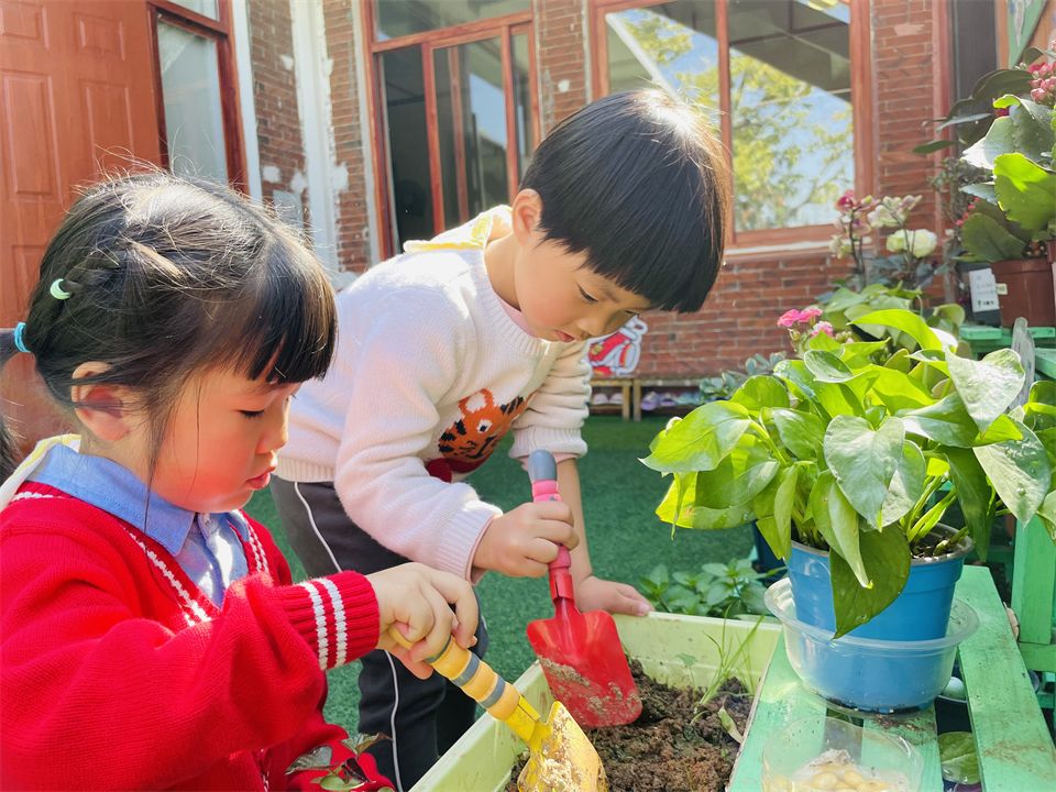 泥土的气息伴着和煦的微风,班级的自然角显得春意盎然。宝贝们对自然角的植物爱护有加,浇水、松土实时关注。