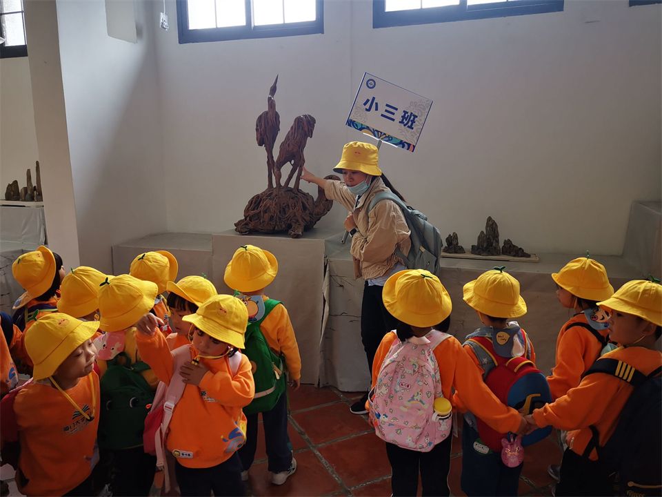 在老师的陪同下,我们一起走进根雕展,各式各样的根雕栩栩如生,根雕师傅可真厉害呀!