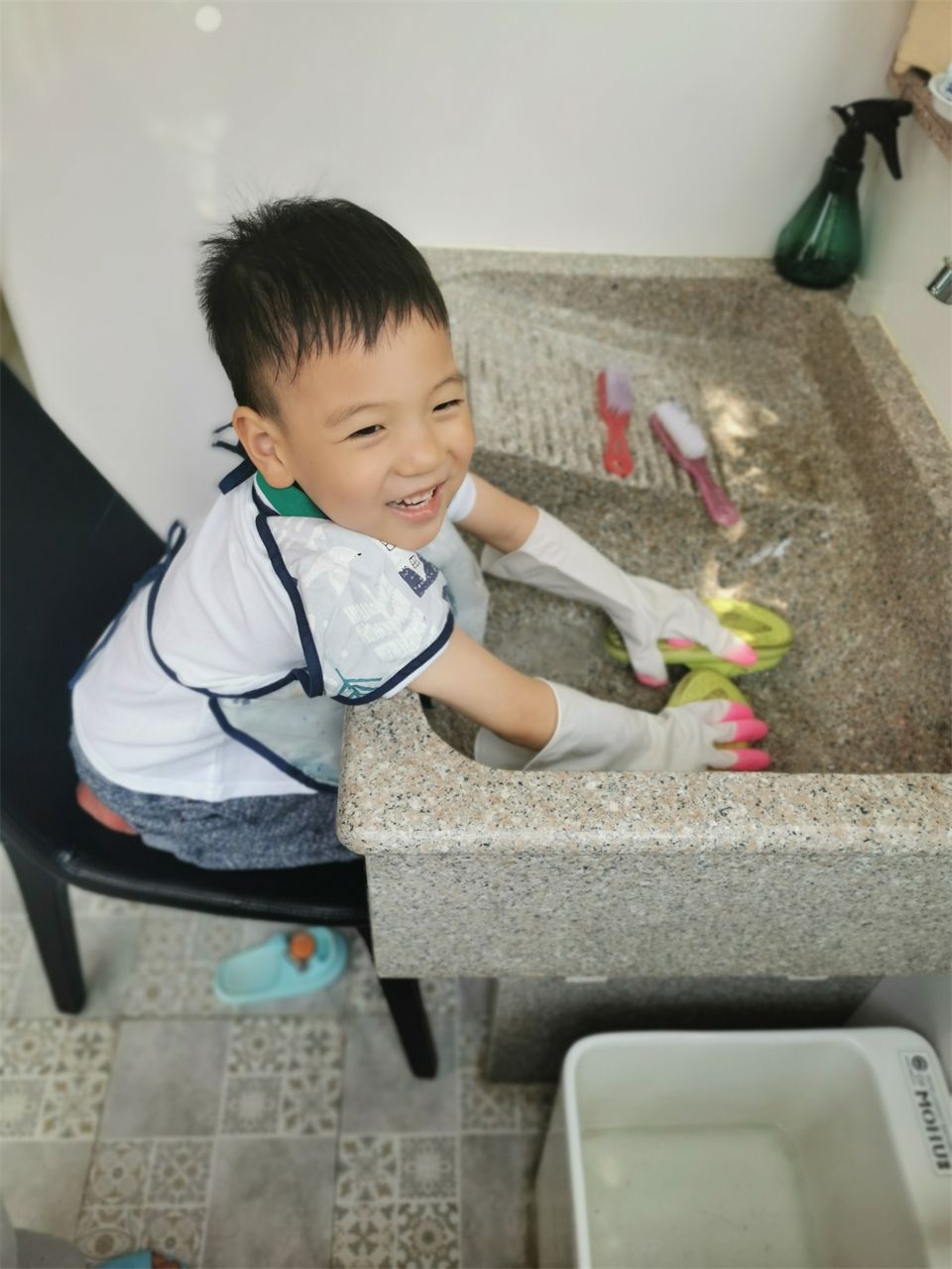 看我们做的可真棒,小小的双手发挥了大大的作用,擦玻璃、扫地、拖地、洗衣服…不愧是能干宝贝~