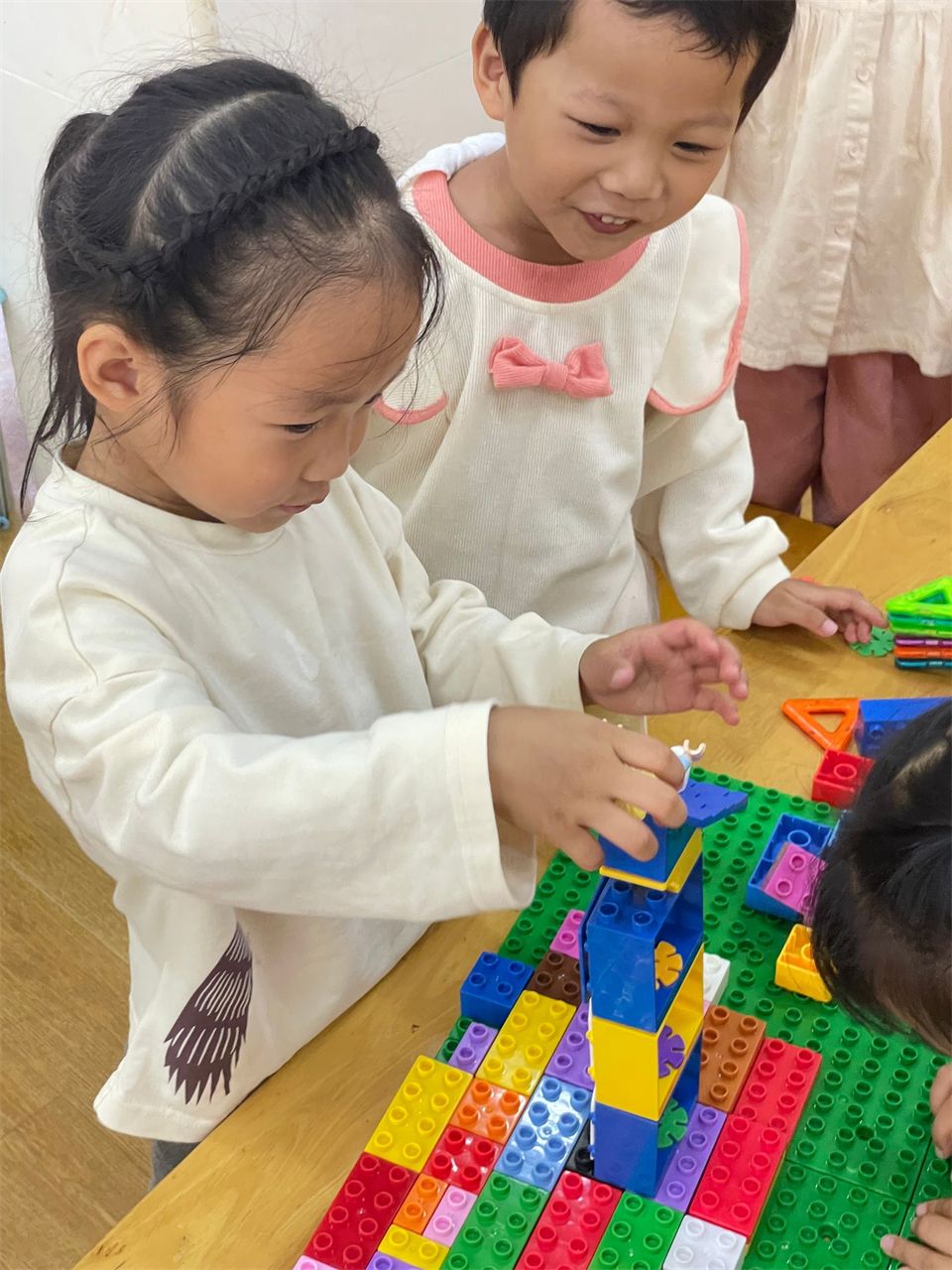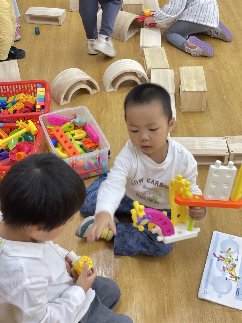 这边的小小建筑师已经就位,萌娃们说我要搭高楼,以后爸爸妈妈都住在这里,还有这里是飞机场,飞机可以往这里飞,旁边就是隧道车子也能往这里走,还要搭公路中间是红绿灯,旁边就是许多高楼,还有旋转木马…萌娃们大显身手想象力太丰富啦,不愧是小小厦大娃。