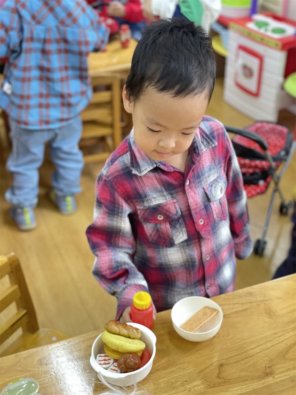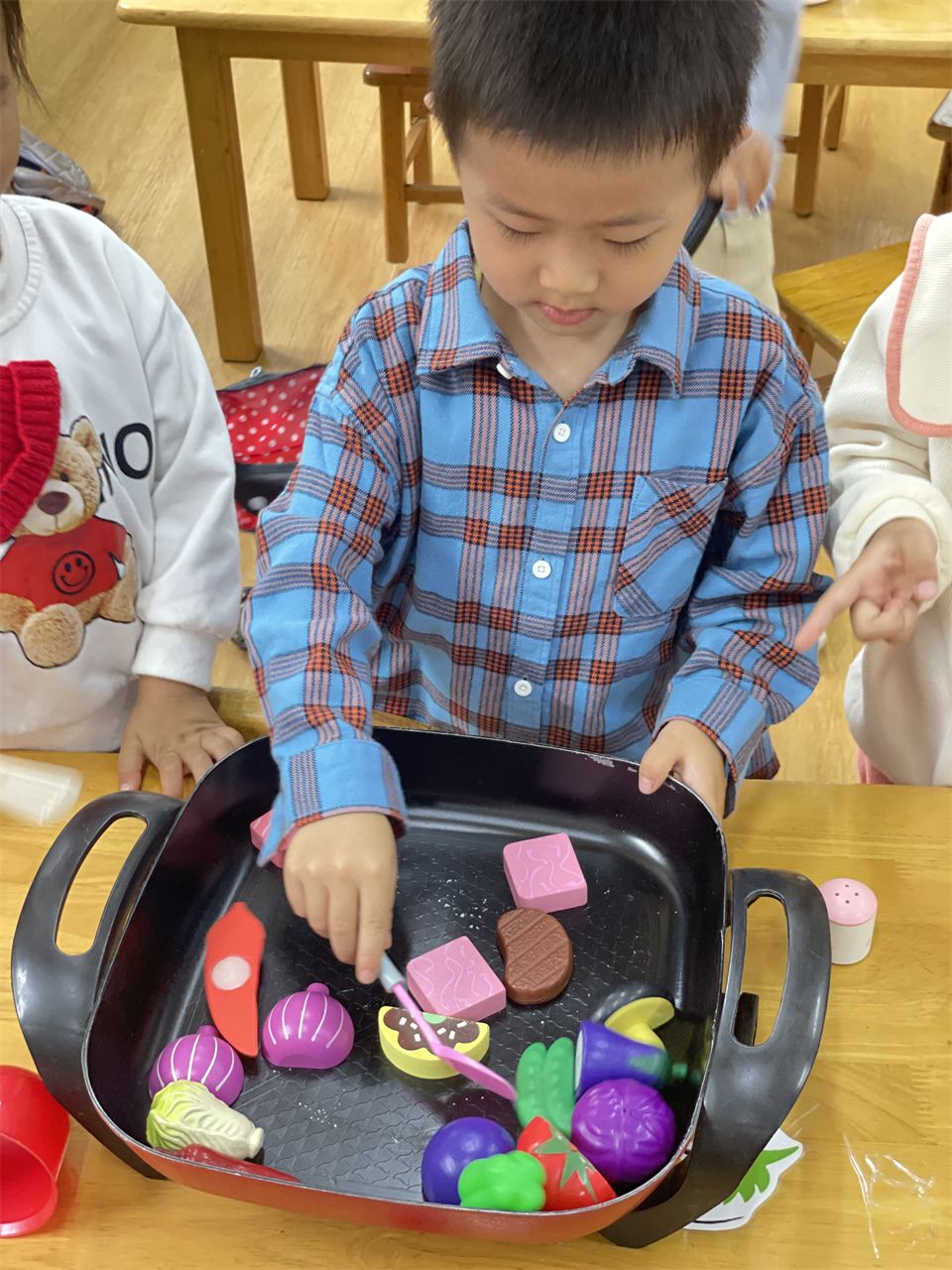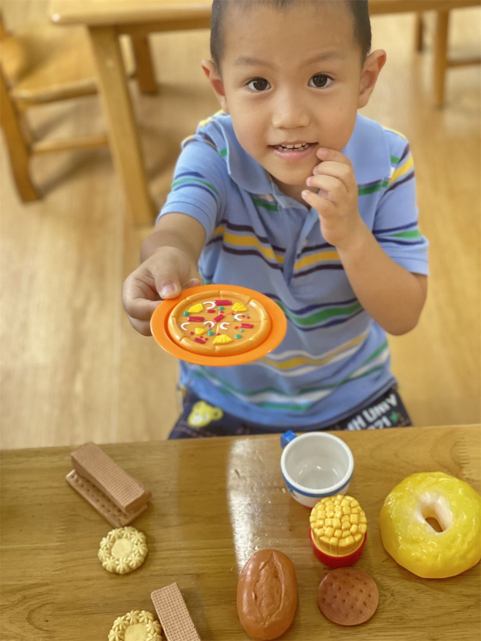 小厨师们已经忙活起来啦,“香喷喷的炒蔬菜,美味的蔬菜汤”,“好吃的烤披萨以及各种各样的面包”,当然不能少了香甜可口的水果,大家快来品尝啦~