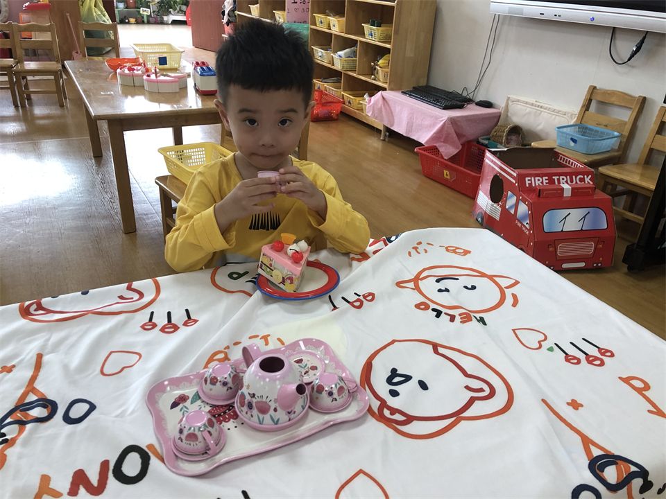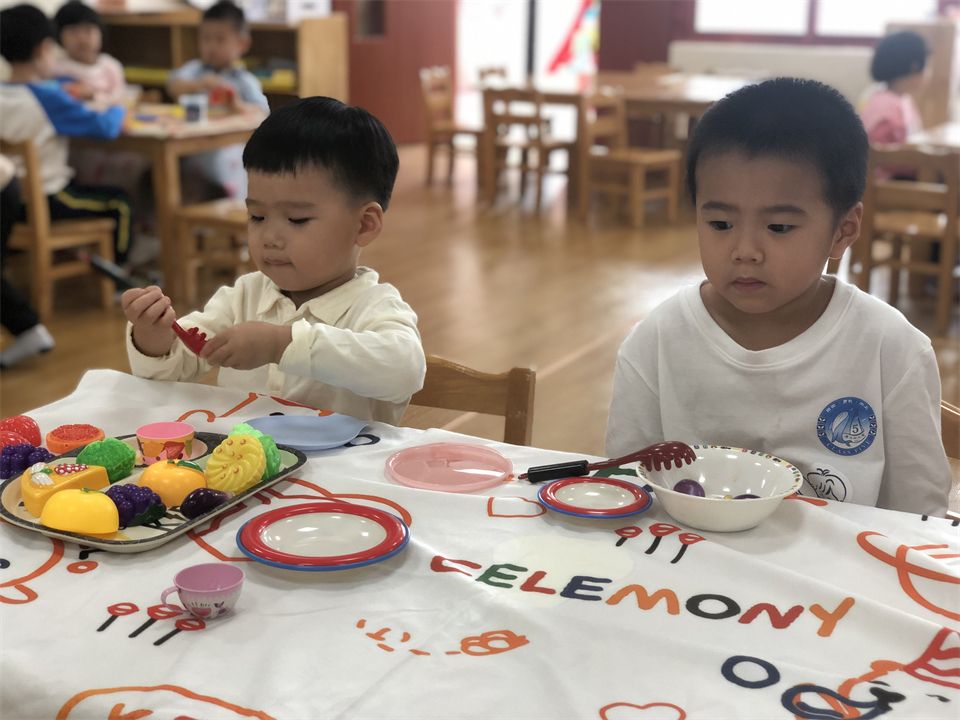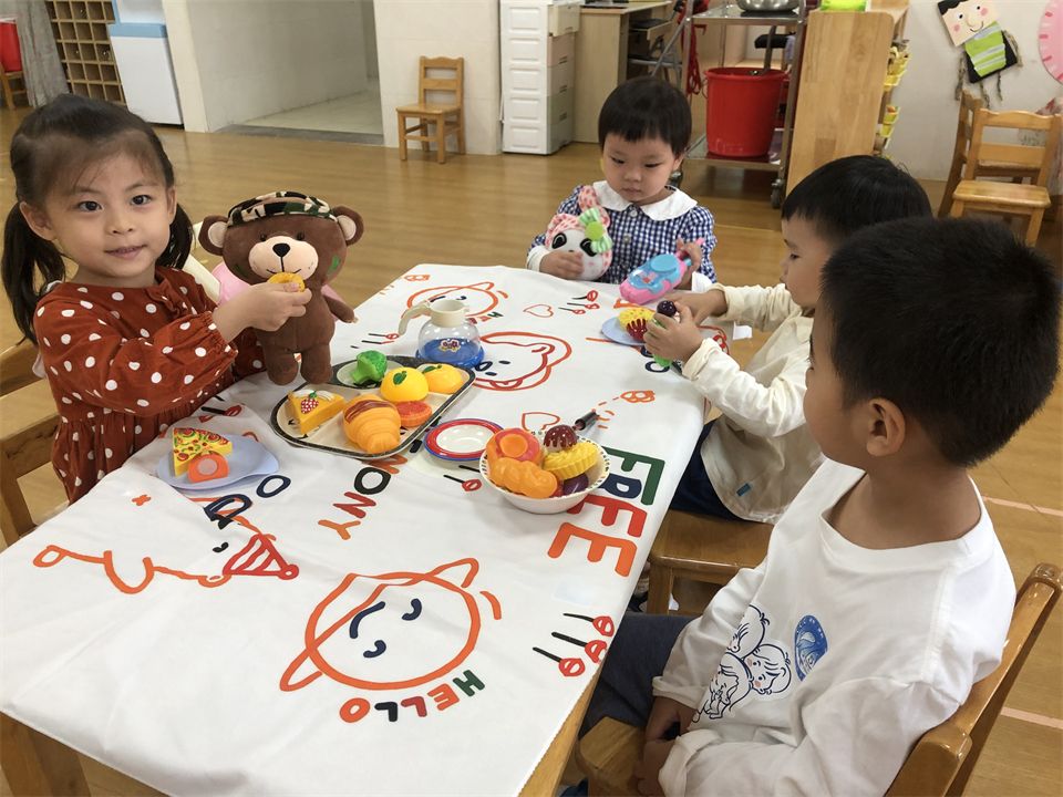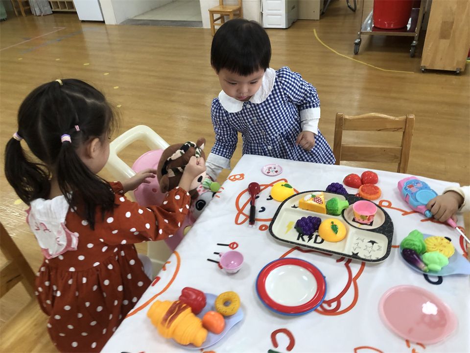 班级娃娃家的西餐厅、中餐厅同时开张了,快点来享受美食。