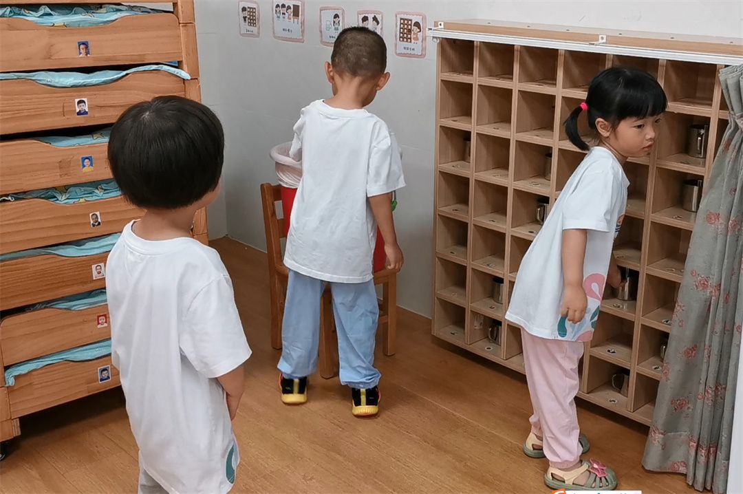 睡午觉了小朋友们自己穿脱鞋袜,有序排队测量体验,做好睡前的准备。
