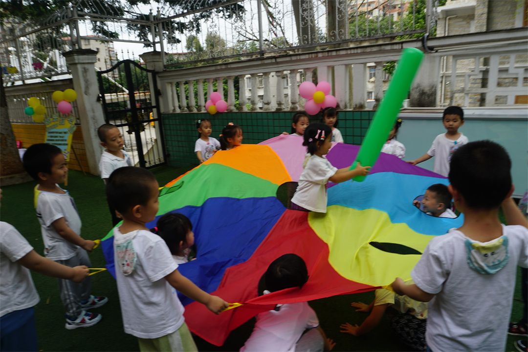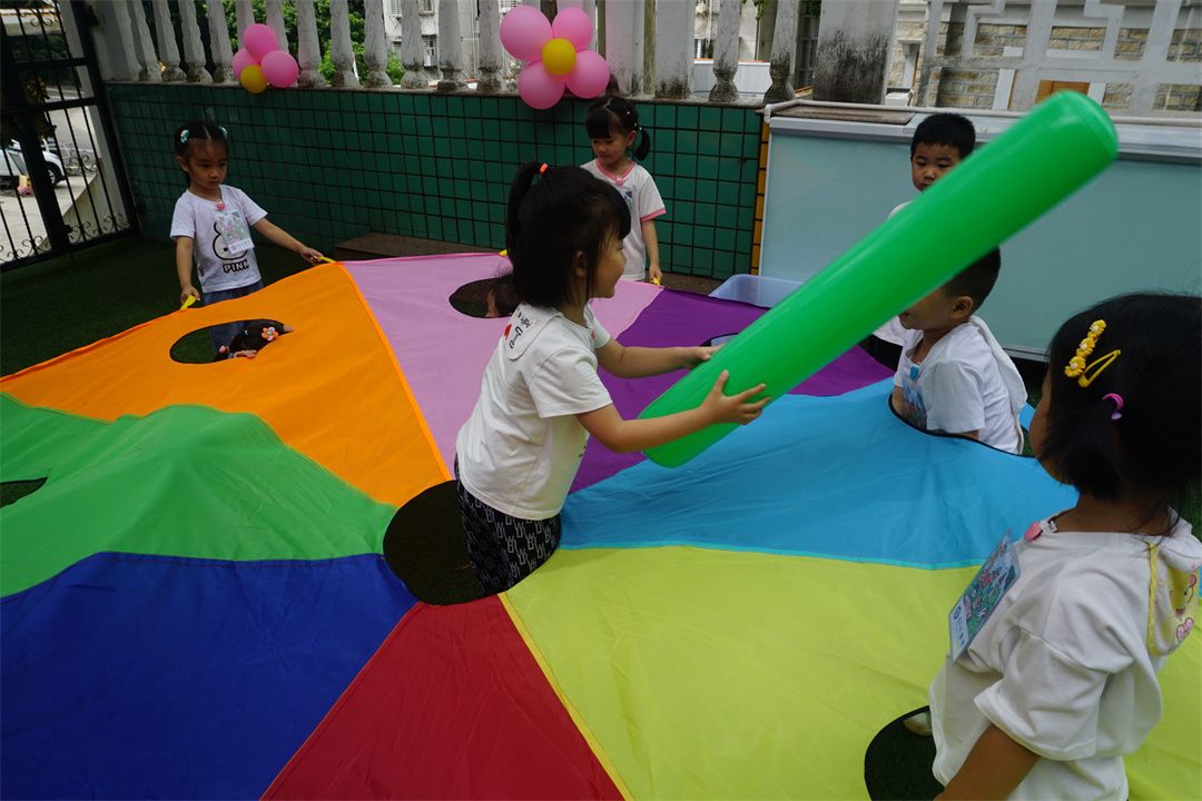 尖叫声不断,真人版“打地鼠”来啦!孩子们穿梭在好玩的彩虹伞,我们在刺激的躲藏中兴奋不已,空气里都充斥着我们欢快的笑声。