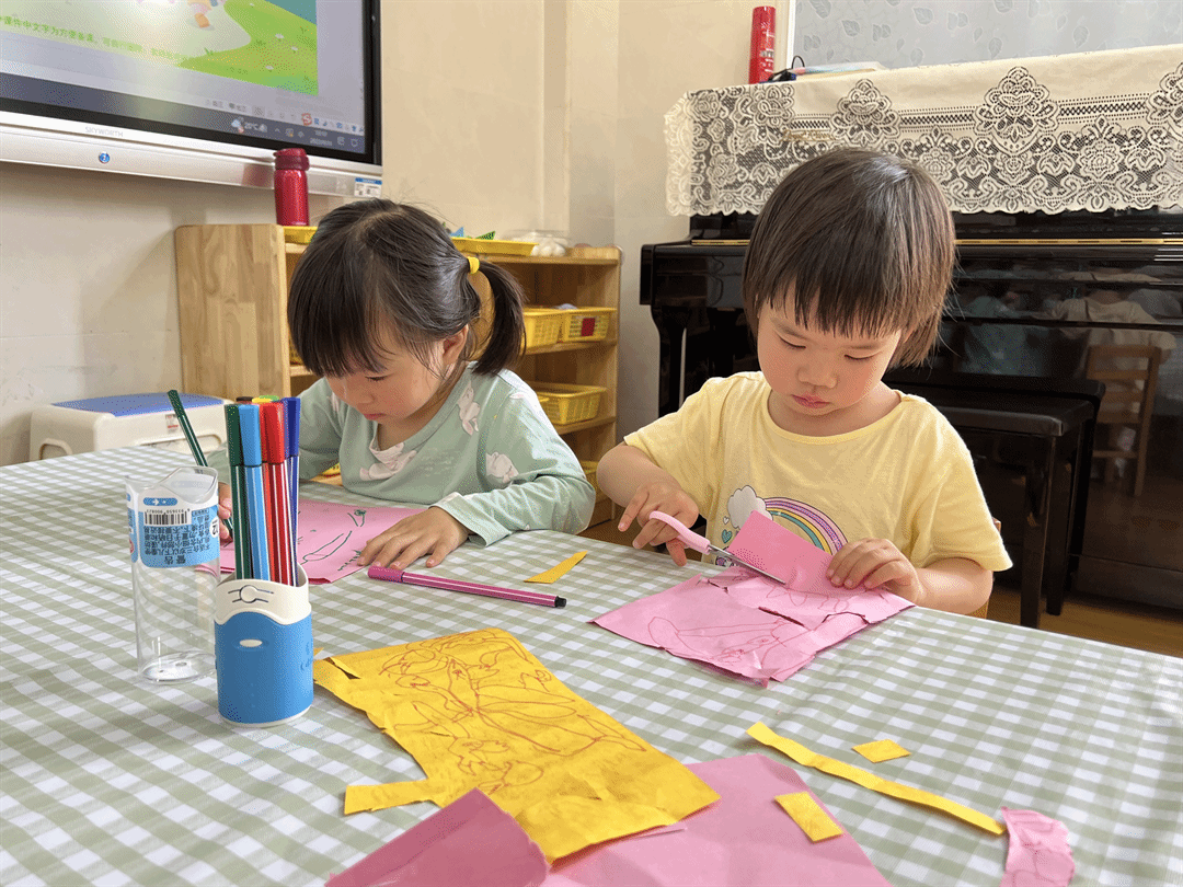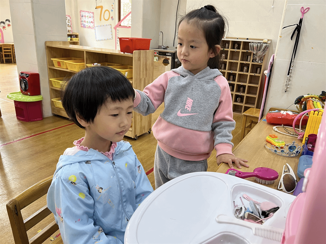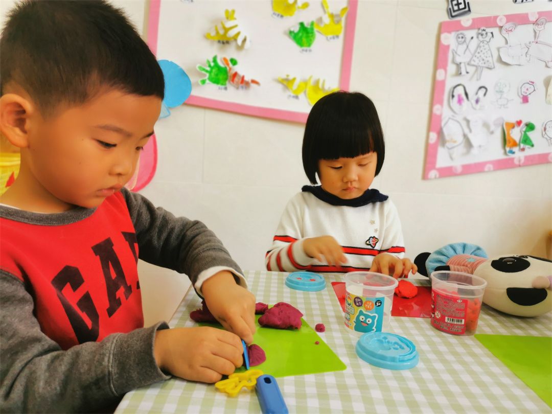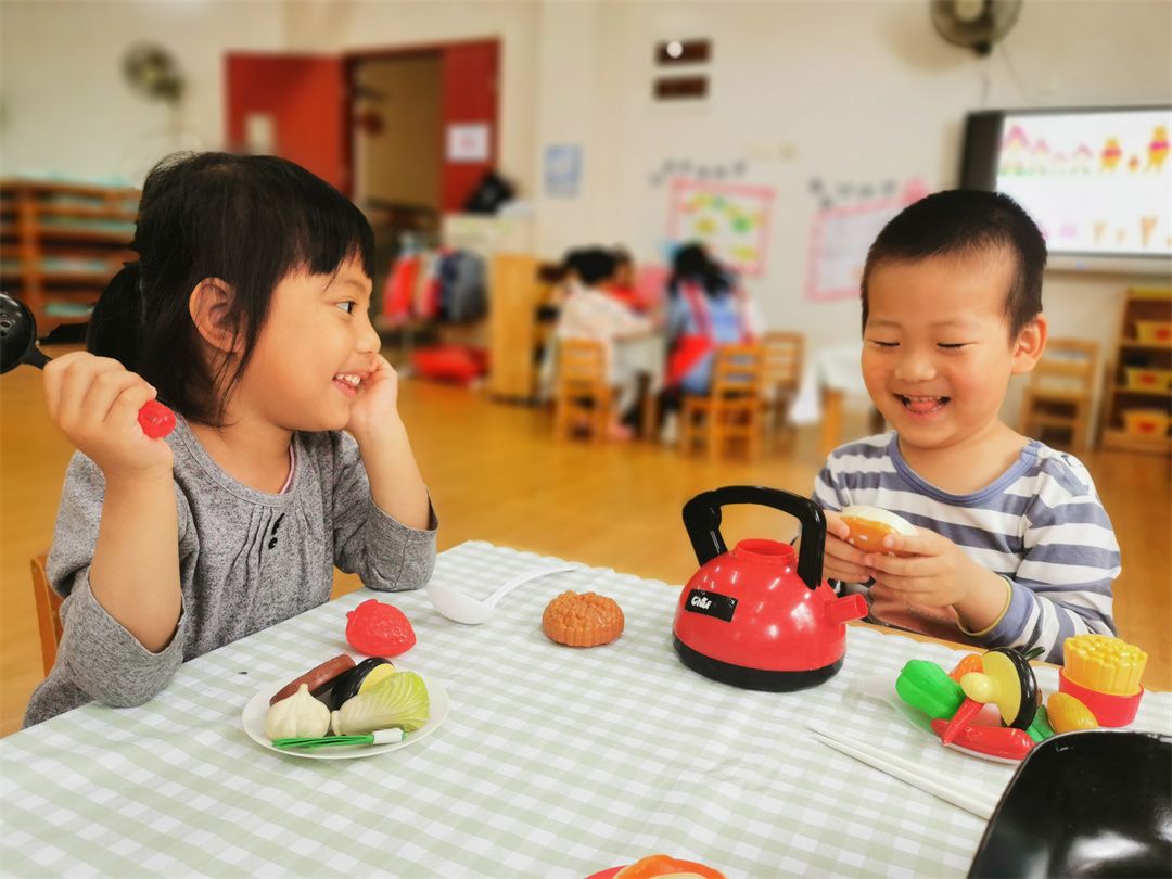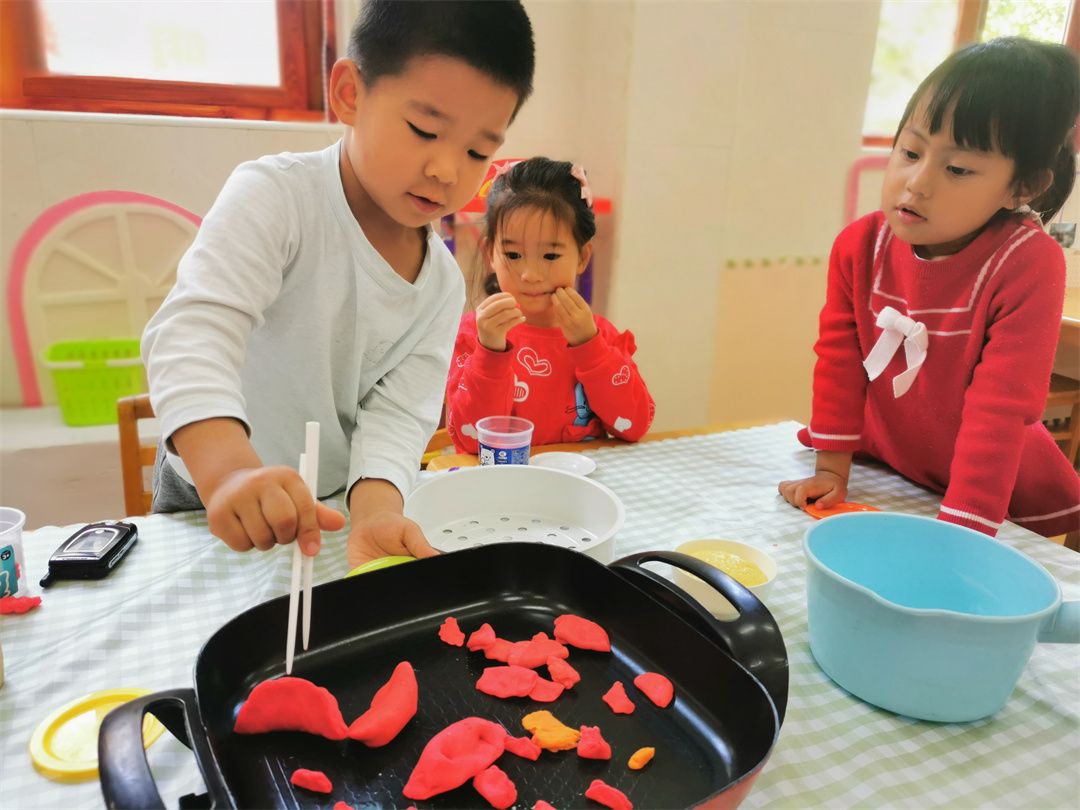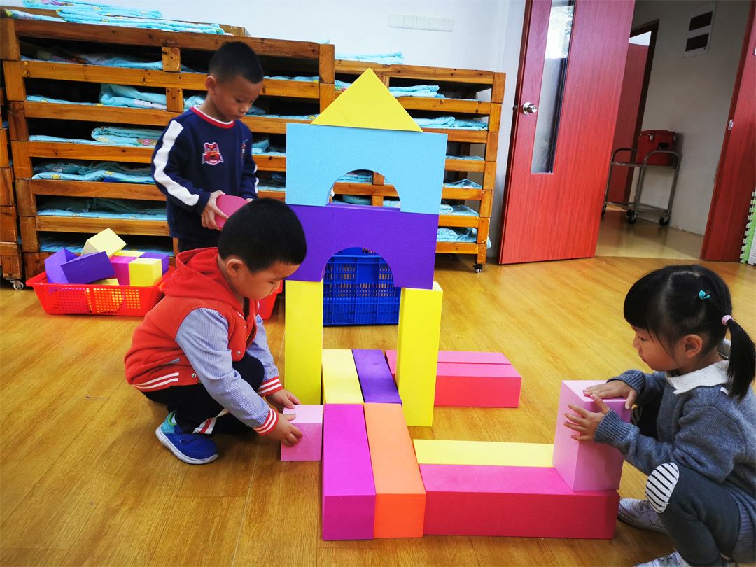家庭区中他们扮演着各种角色,“爸爸”做饭、“姐姐”熨衣服、“妈妈奶奶”给“宝宝”洗澡等等……;积木区中他们往往十分忙碌,因为他们的双手和头脑始终处于积极的状态,造型各异的模型车辆、小房子……促使孩子们乐此不疲地在自己的小天地里畅游;表演区中“小演员”们有模有样,尽情展现自己的才能;还有图书区认真看书的样子,艺术区中画画、玩泥、剪纸等等,他们对自己动手做出来的作品产生了极大的满足感……