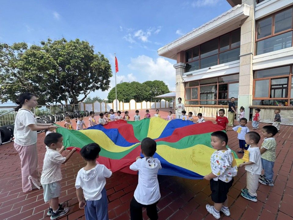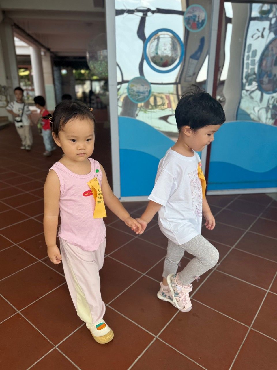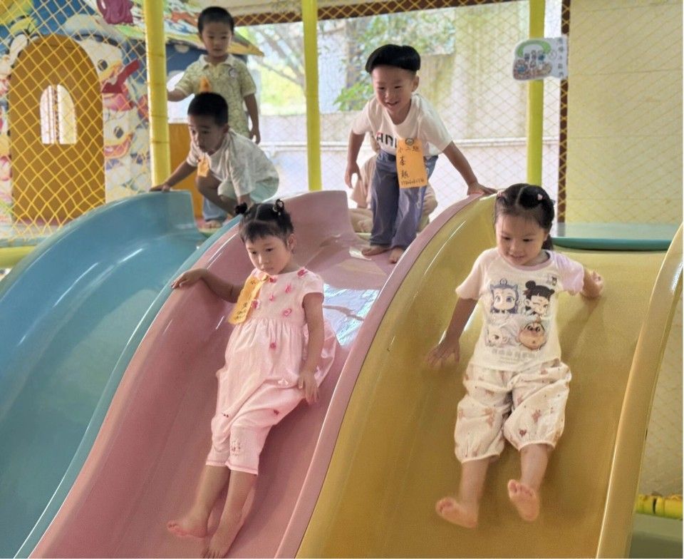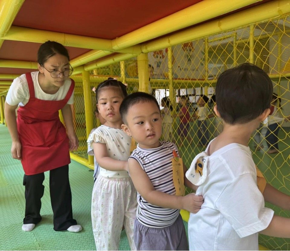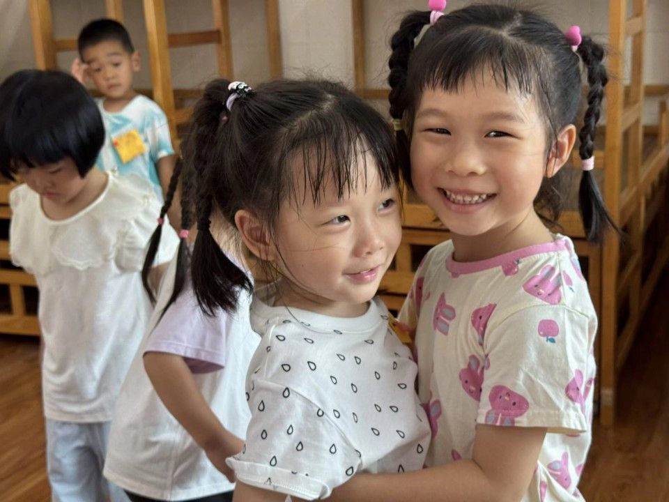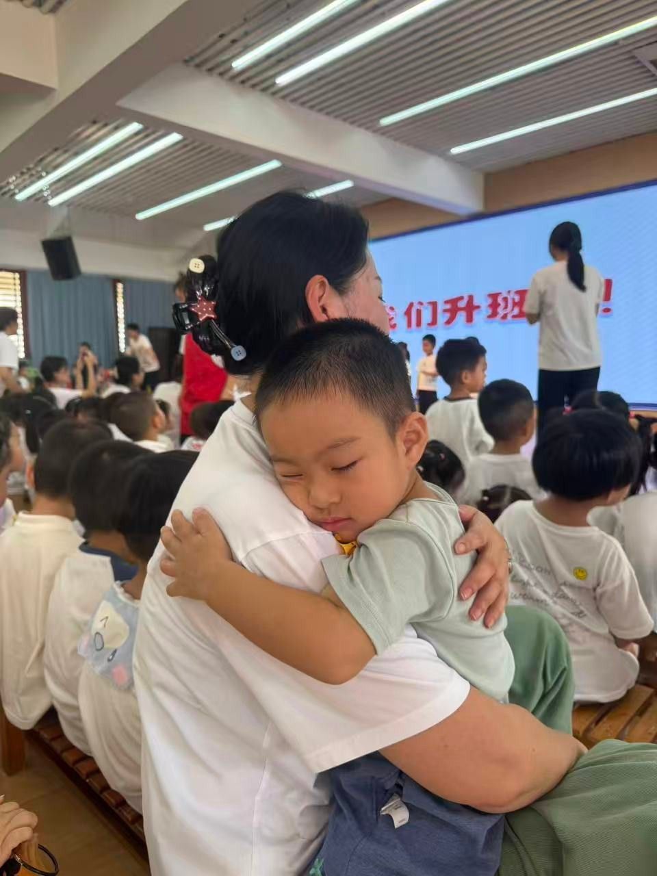 但成长总在不经意间发芽!在老师暖暖的拥抱和温柔的话语里,宝贝们慢慢放下焦虑:从躲在角落到主动拉起小伙伴的手玩“开火车”,从紧张地盯着手指到跟着老师跳可爱的身体律动,教室里的笑声越来越甜。他们或是围坐在一起读绘本、或是在游戏区搭积木、在淘气堡撒欢奔跑,连参加升旗仪式时,小腰都挺得笔直,满是认真。