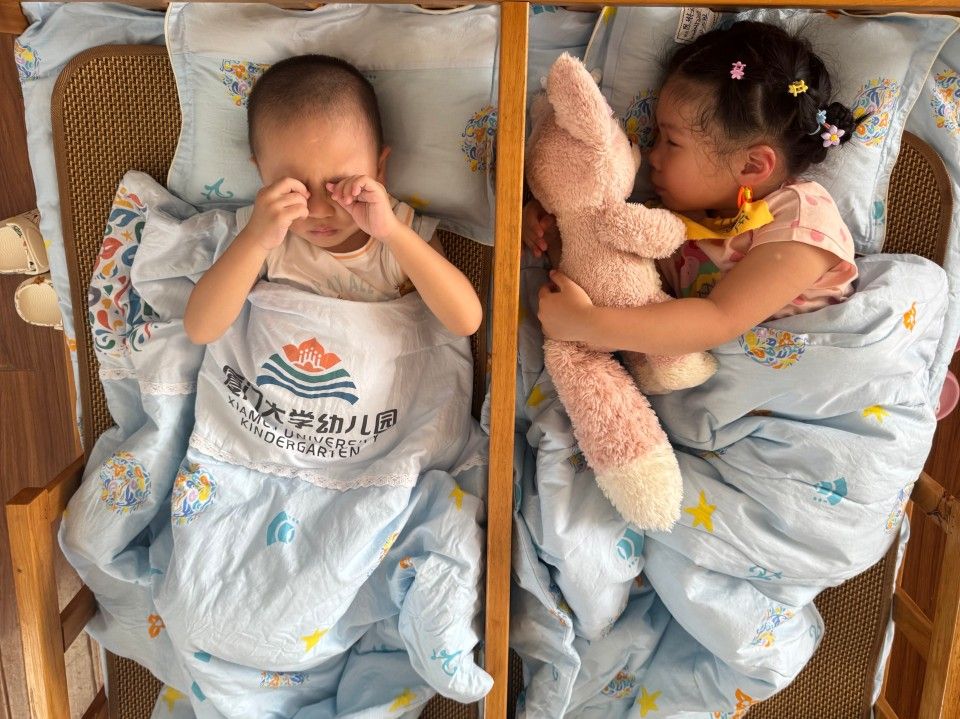 吃饭喝水也成了小成就!宝贝们自己拿起小勺、端起小碗,再也不用爸爸妈妈帮忙;接水时会小心端平杯子,嘴里还念叨着“多喝水不生病”。到了午睡时间,曾经“哇哇”不愿躺下的小不点,如今能在老师的睡前故事陪伴下,安稳进入甜甜的梦乡。