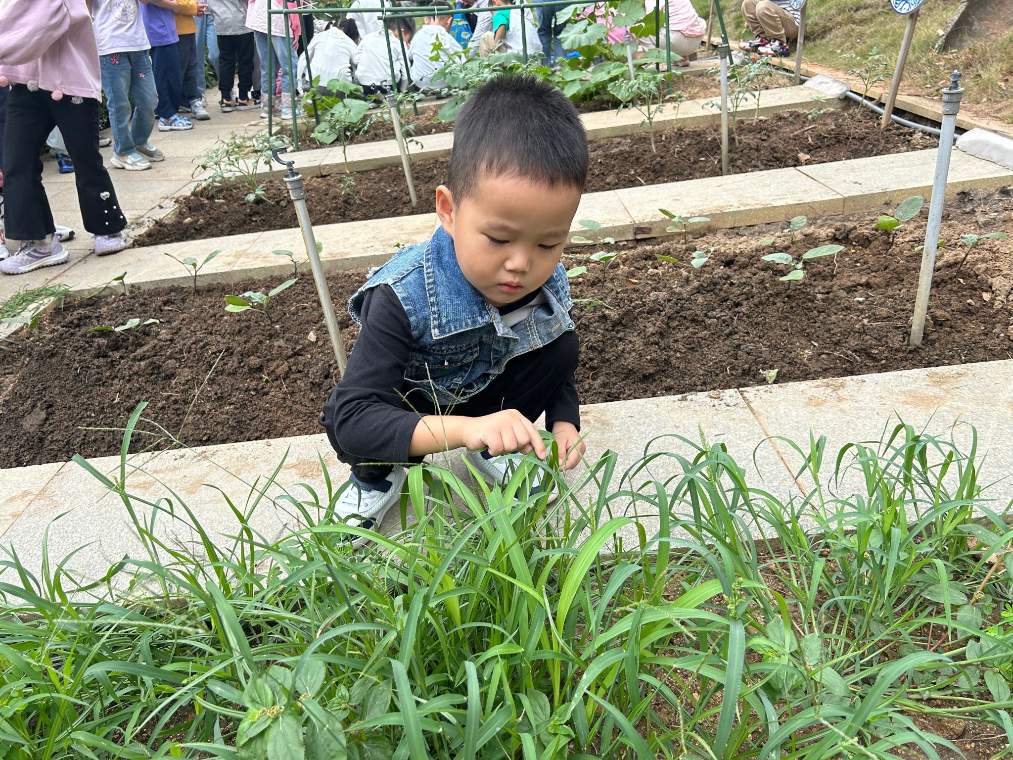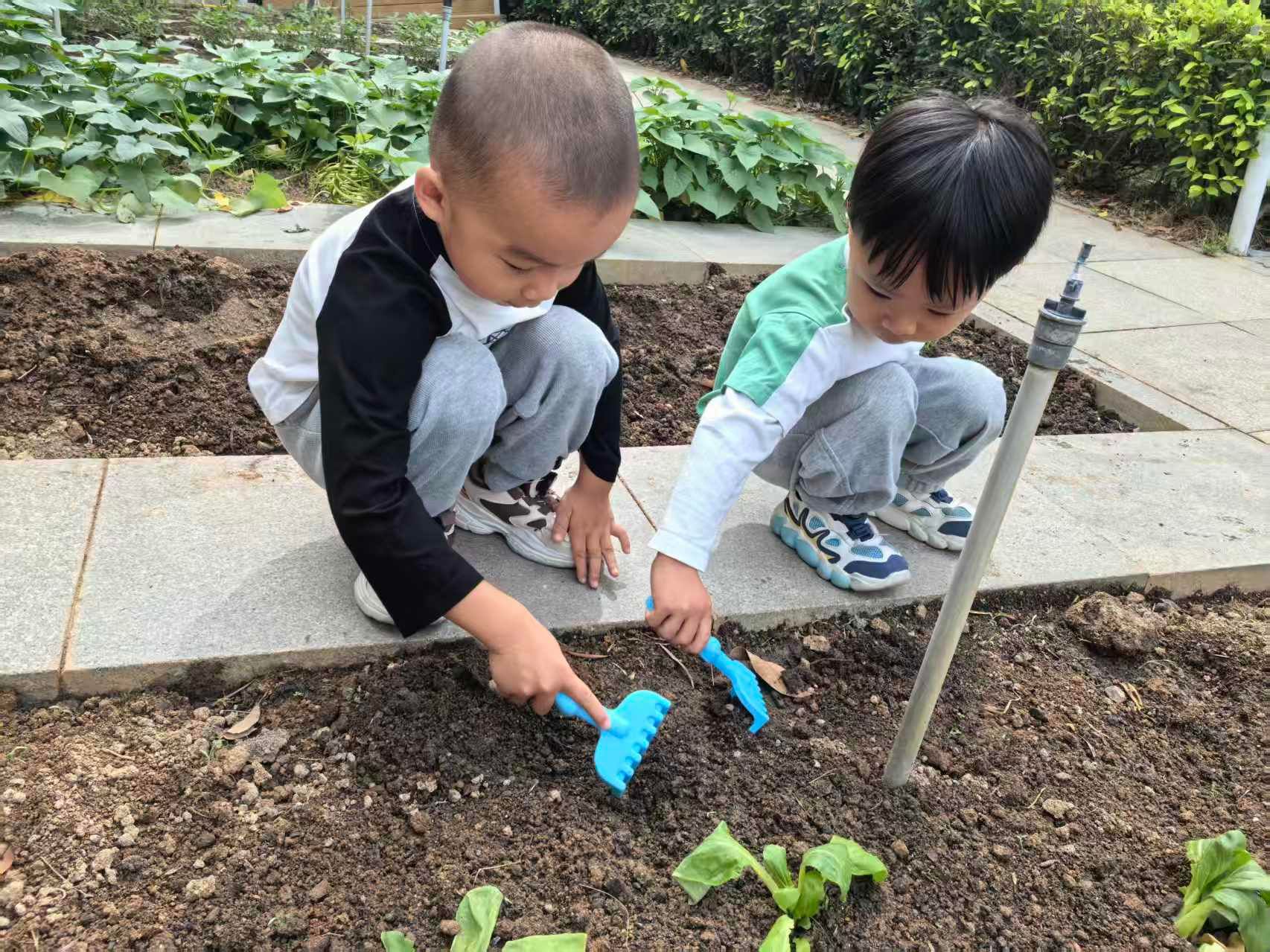 菜地养护:劳动中的小小园丁