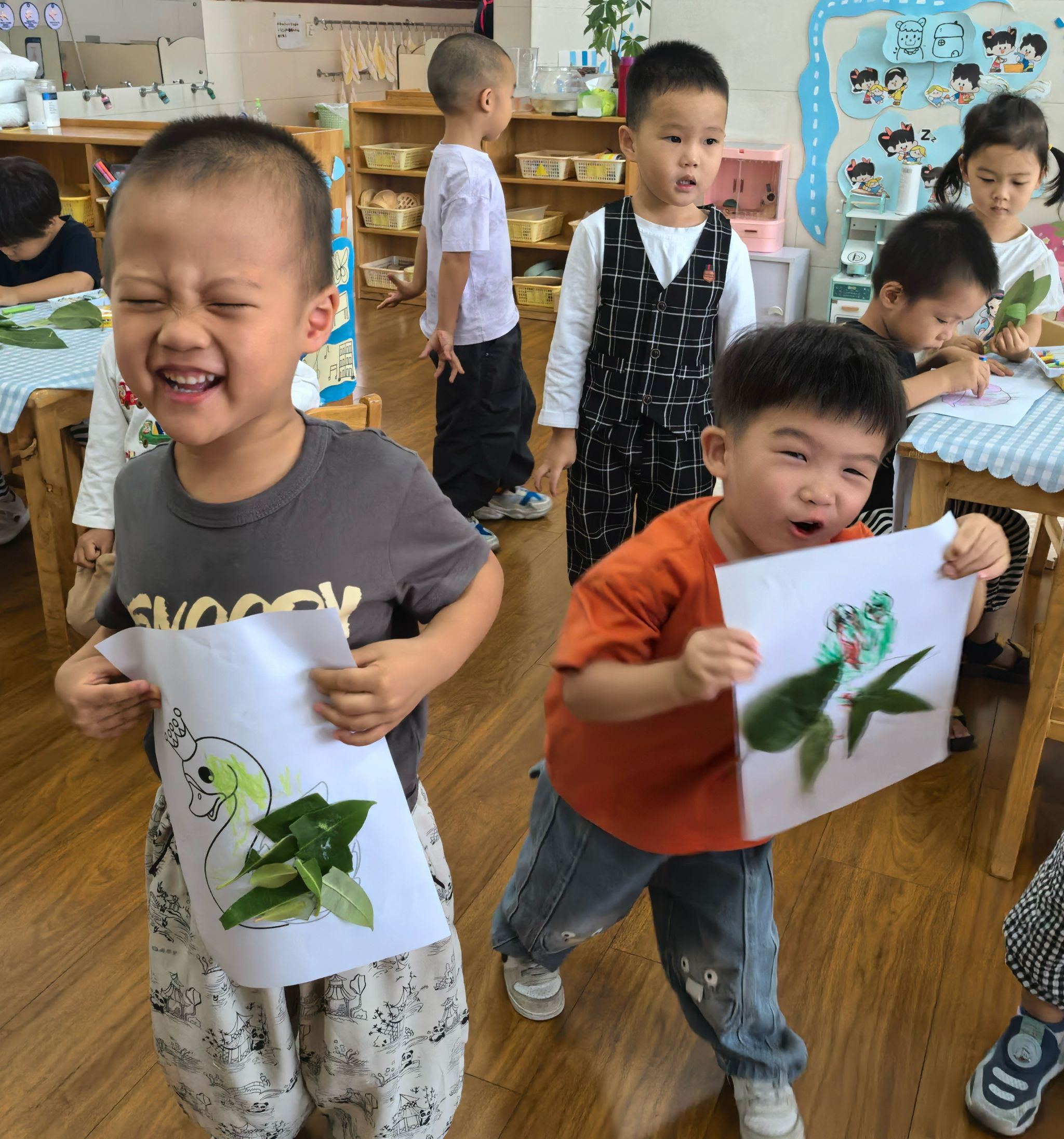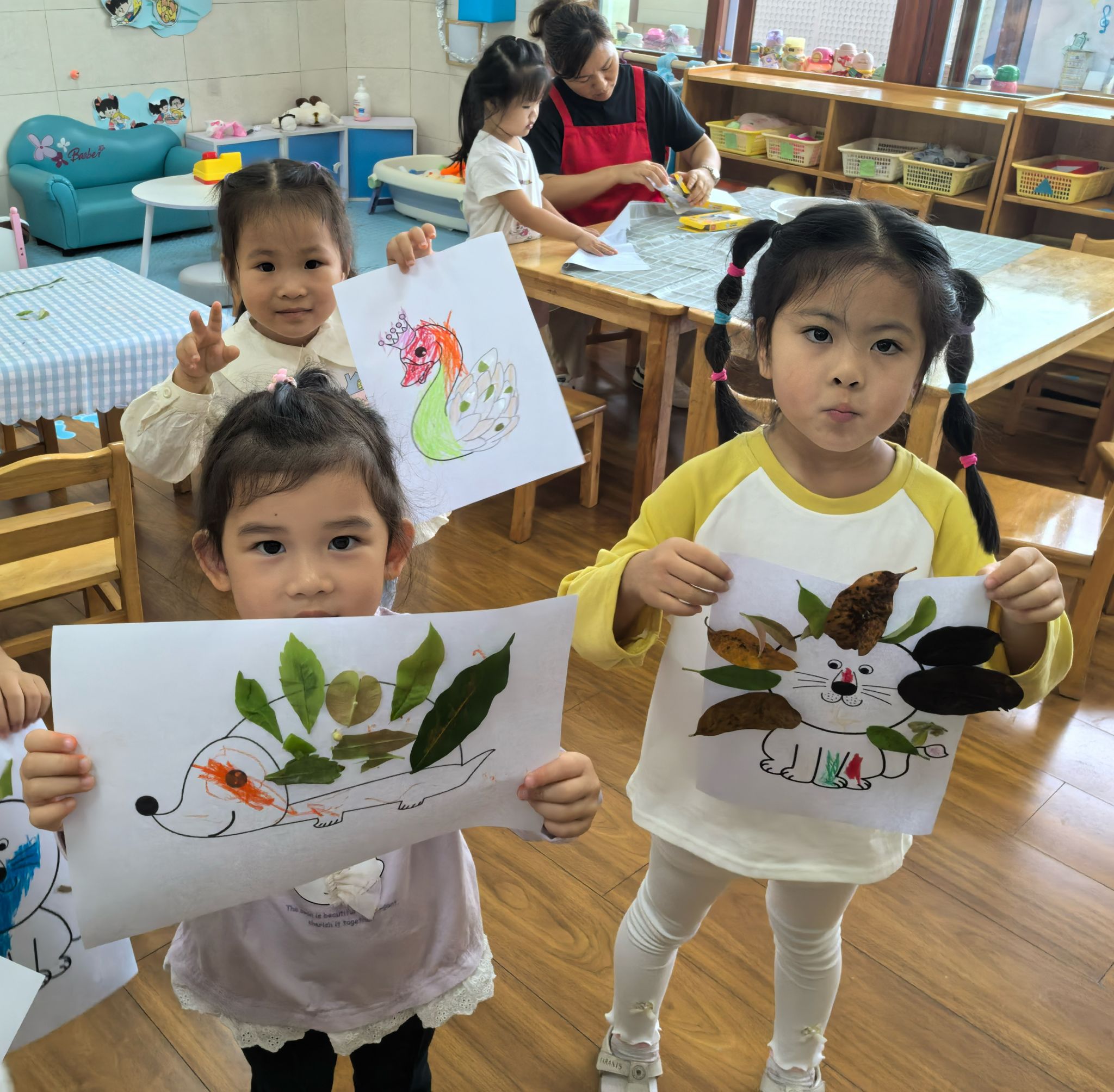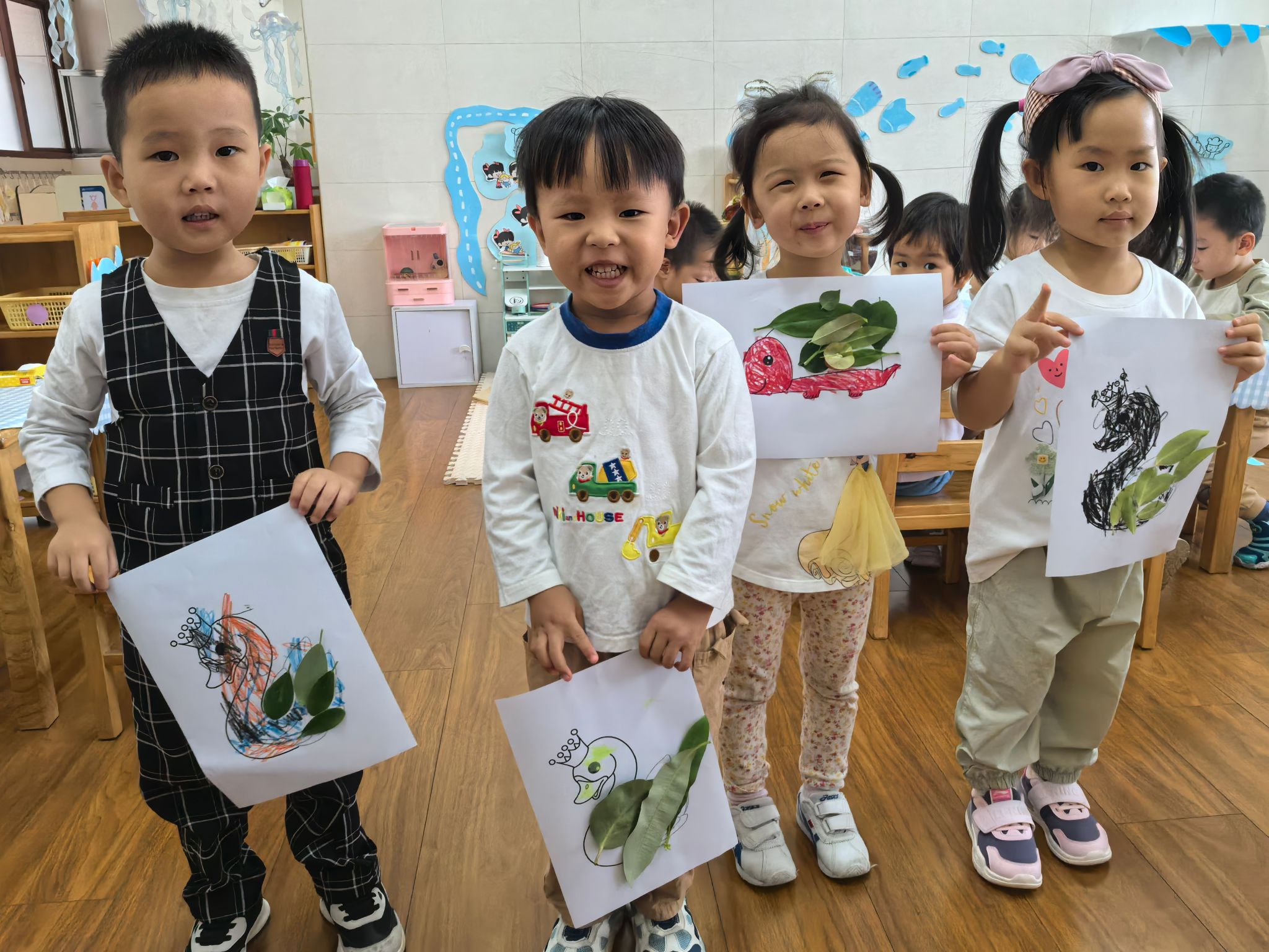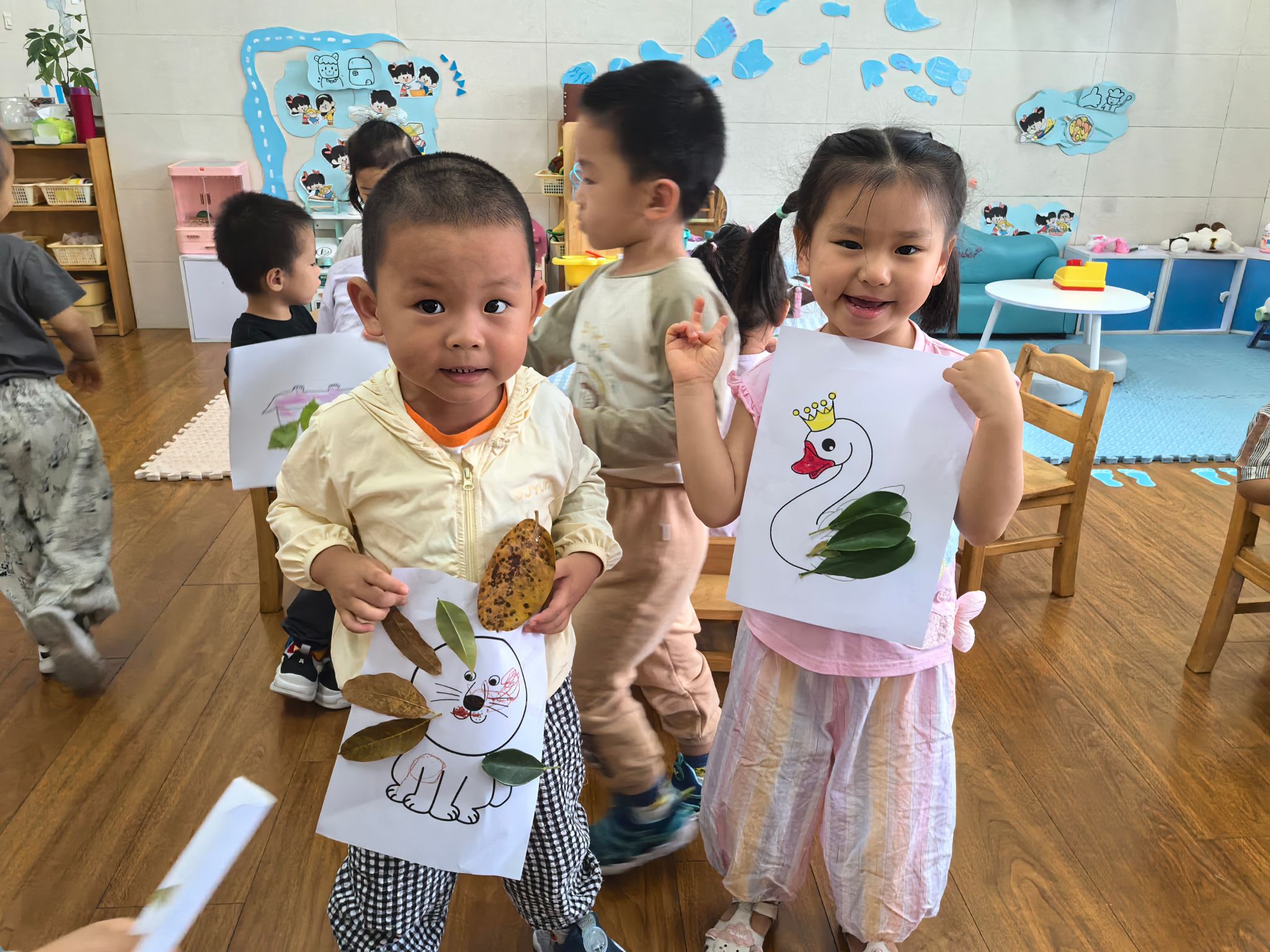 秋风起,树叶落,山坡上铺满了五彩斑斓的落叶,一起去捡拾“秋天的礼物”,红的、黄的、棕的叶子变成了珍宝,回到教室,孩子们发挥创意,把叶子贴成了小动物、花朵、房子……一幅幅独特的树叶贴画让人惊叹不已。在创作中,孩子们不仅锻炼了动手能力,更体会到秋天的美丽与自然的神奇。