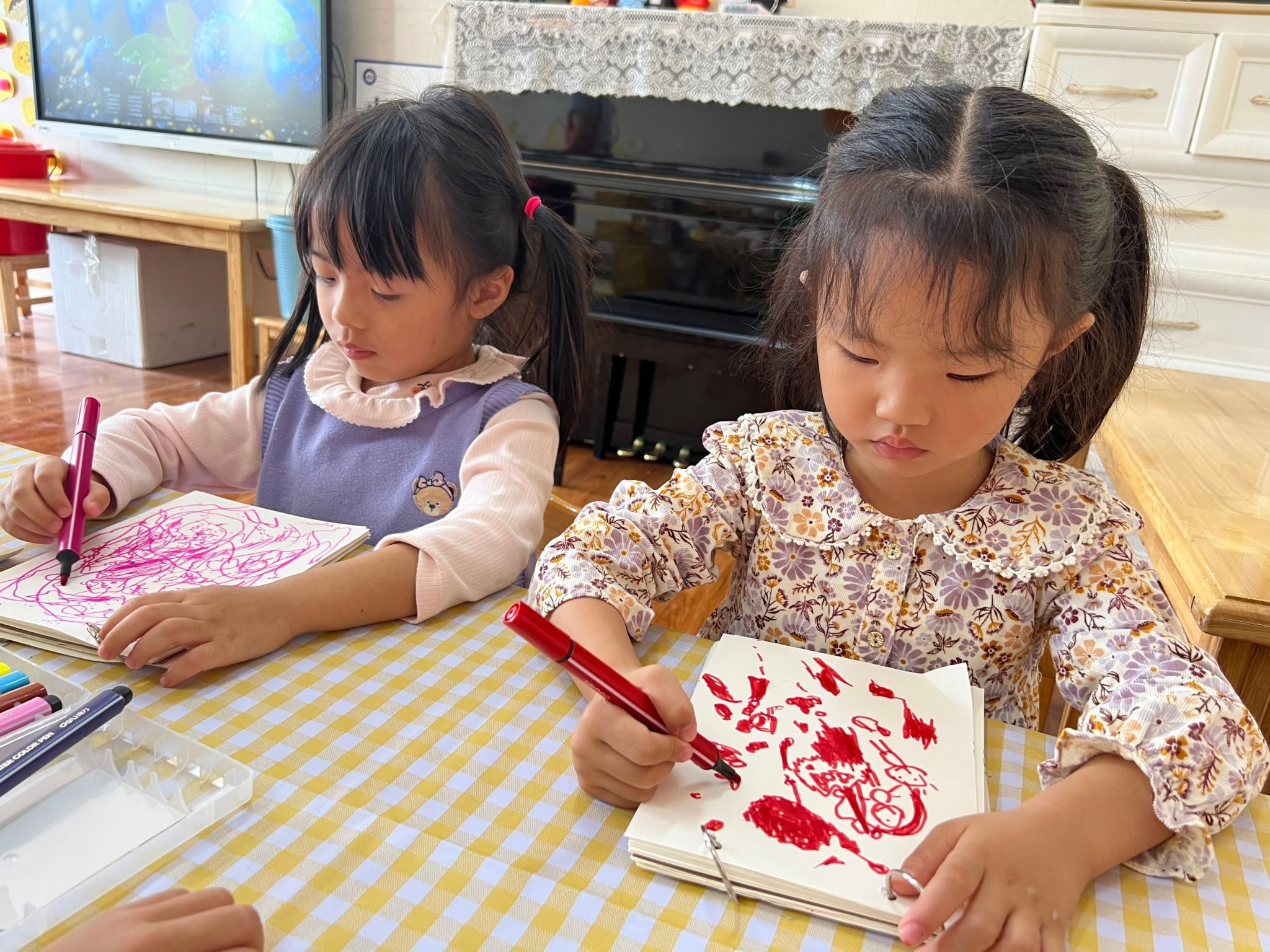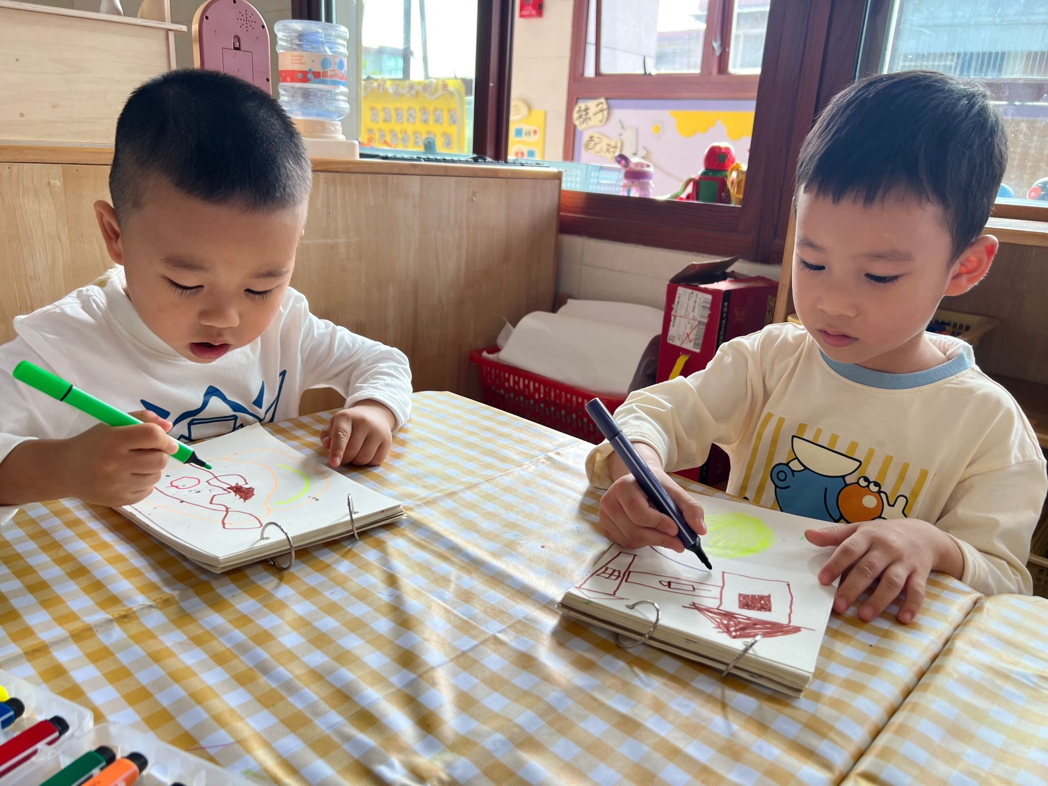 “小松鼠会不会也喜欢我们的点心?”“它们喝不喝牛奶?”孩子们热烈讨论着小松鼠的食谱,还用五彩画笔画出自己猜想中小松鼠爱吃的食物:苹果、玉米、松果……一幅幅充满想象的画作,承载着孩子们对小松鼠满满的关心。