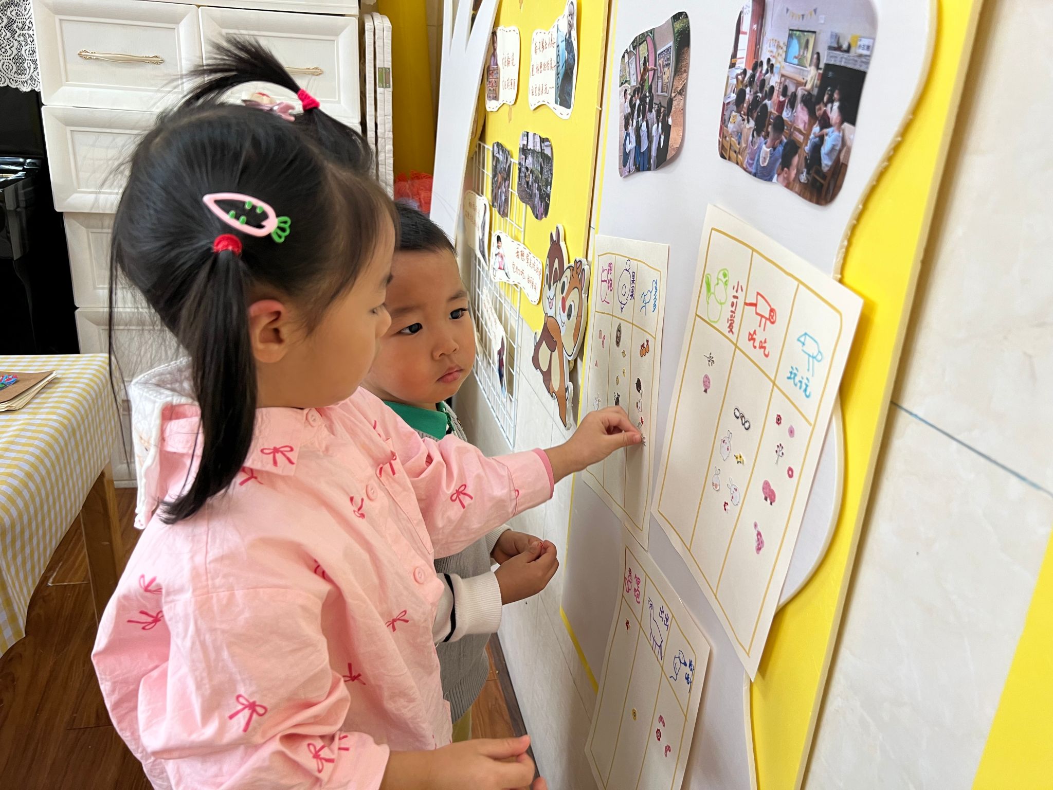 给小松鼠取名可是件大事!孩子们创意满满,想出了好多可爱的名字:“果果”“多多”“嘟嘟”……每一个都充满童趣。这么多好听的名字,该怎么选呢?于是,老师和孩子们一起组织了一场有趣的取名投票活动,让每个小朋友都有机会为自己最喜欢的名字投上一票。
